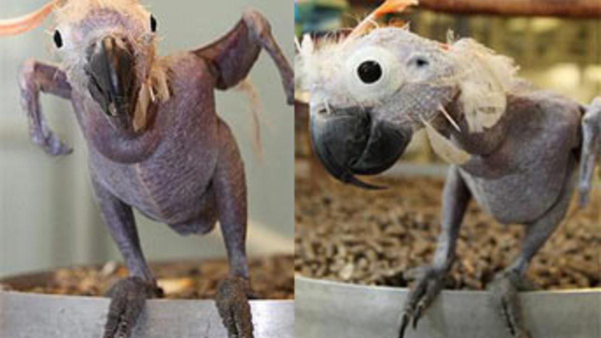 Tam 13 yıldır tüyleri olmadan yaşayan papağan ölmek üzereyken polisler tarafından kurtarılmıştı.