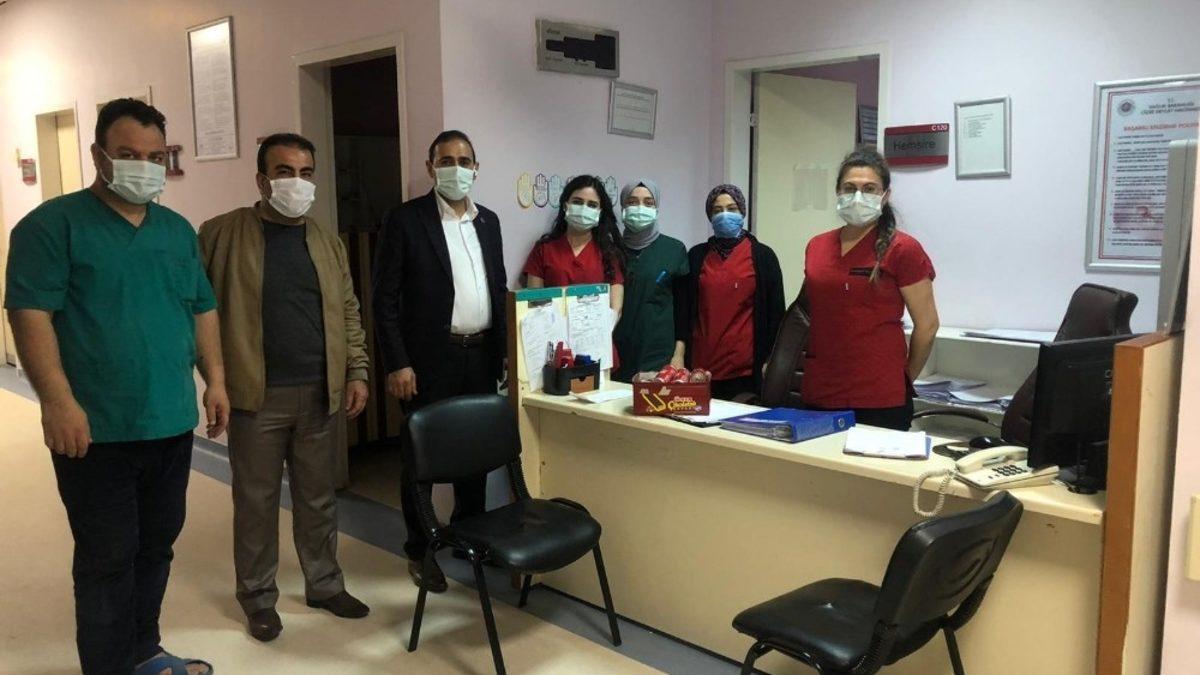 Cizre Devlet Hastanesi yönetimi, yeni yıla nöbetleri başında giren sağlık çalışanlarını yalnız bırakmadı. Cizre Devlet Hastanesi Başhekim Yardımcısı Op. Dr. Serdar Monis ve Hastane Müdürü Giyasettin Ucaş, gece geç saatlere kadar hastanede kalıp korona virüs servislerinde virüs ile mücadele eden sağlık çalışanları ile birlikte 2021’i karşıladı. 2020 yılının kahramanları olan sağlık çalışanlarını 2021 yılının ilk dakikalarında da yalnız bırakmayan Cizre Devlet Hastanesi Başhekim Yardımcısı Op. Dr. Serdar Monis ve İdari ve Mali İşler Müdürü Giyasettin Ucaş, sağlık personellerine yeni yıl için iyi dileklerde bulunup ikramda bulunuldu.