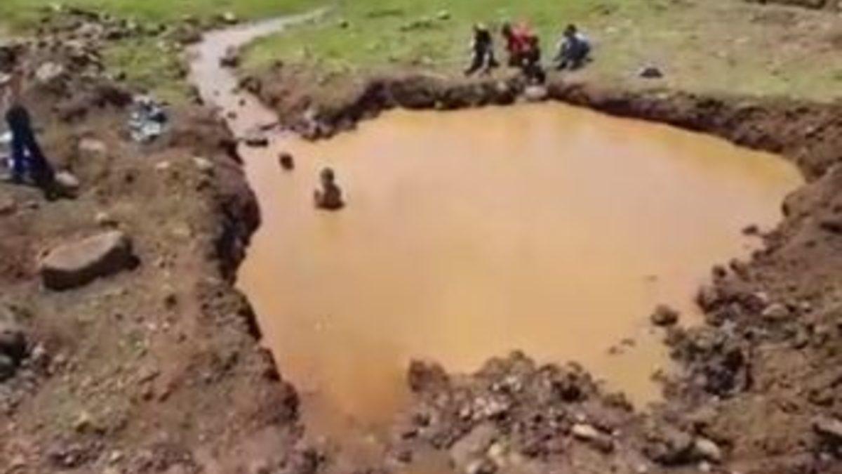 Şanlıurfa’nın Siverek ilçesinde sıcaklardan bunalan çocuklar, sulanan tarım arazilerinin biriktirdiği çamurlu su birikintilerinde serinlemeye çalıştı.Edinilen bilgiye göre, Şanlıurfa’nın Siverek ilçesinde yaklaşık 35 dereceyi bulan sıcaklardan bunalan küçük çocuklar, sulanan tarım arazilerinden akarak küçük birikintiler oluşturan çamurlu suda serinlemeye çalıştı. İlçeye 40 kilometre mesafede bulunan Küptepe kırsal Mahallesi’nde yaklaşık 10 metrekarelik çamurlu su birikintisinde oyun oynayan çocuklar ölüme de davetiye çıkarıyor. Yoldan geçerken çocukların yüzdüğünü gören bir vatandaş, cep telefonuyla olanları kaydetti. Kayıtla birlikte yorum da yapan vatandaş, çocuklara neden çamurlu suda yüzdüklerini sorunca çocuklar ise sağlıksız olduğunu fakat yine yüzdüklerini belirtti.