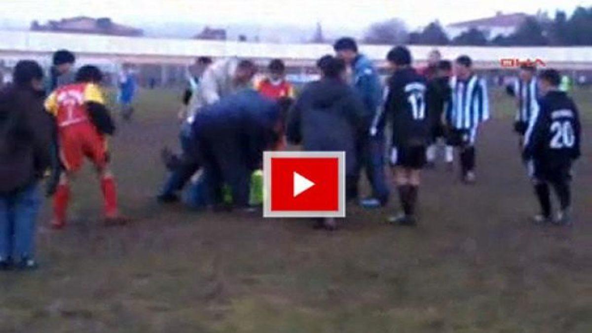 Nevşehir'de 75. Yıl Ortaokulu ve Avanos ilçe Ortaokulu arasında oynanan maçta yaşanan bir pozisyon sonrası, mücadeleyi izleyen bir kişi sahaya girerek hakemi dövdü...