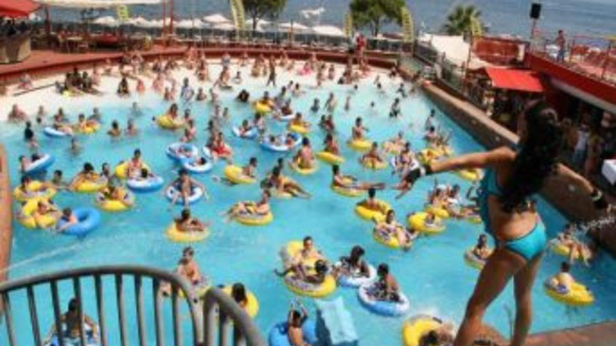 Marmaris'te etkili olan çöl sıcakları nedeniyle, vatandaşlar zor anlar yaşarken yerli ve yabancı turistler, deniz, havuz ve su parklarına girerek serinlemeye çalışıyor.