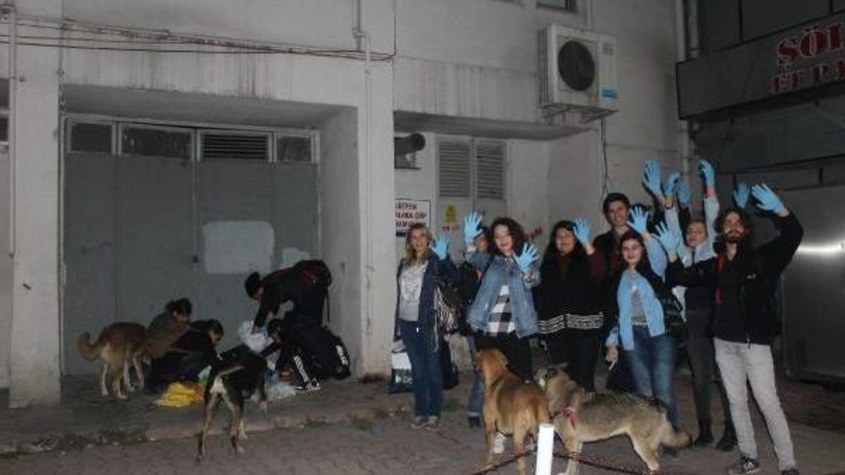Kocaeli Üniversitesi'nden yaklaşık 30 öğrenci her akşam sokak hayvanlarını beslemek için bir araya geliyor. Ellerine eldivenlerini geçiren öğrenciler, İzmit Acısu çevresindeki kasapların attıkları etler ile kemikleri ve çöp konteynerlerinden yiyecekleri ayırarak, sokak hayvanlarını besliyor. Köpek ve kediler, öğrencilerin etrafında toplanırken, bıraktıkları yiyecekleri yiyerek karınlarını doyuruyor. Öğrenciler hayvanları besledikten sonra besleme yaptıkları alanları süpürgelerle temizliyor.