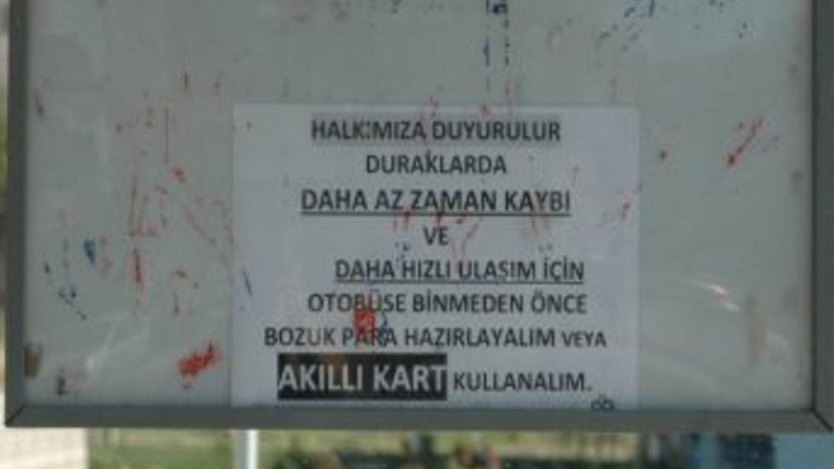 Çorlu Belediyesi tarafından ilçe genelinde yer alan otobüs duraklarının tamamına asılan ve ‘Halkımıza Duyurulur’ başlığını taşıyan duyuruda “Duraklarda daha az zaman kaybı ve daha hızlı ulaşım için otobüse binmeden önce bozuk para hazırlayalım veya akıllı kart kullanalım” ibarelerine yer veriliyor.