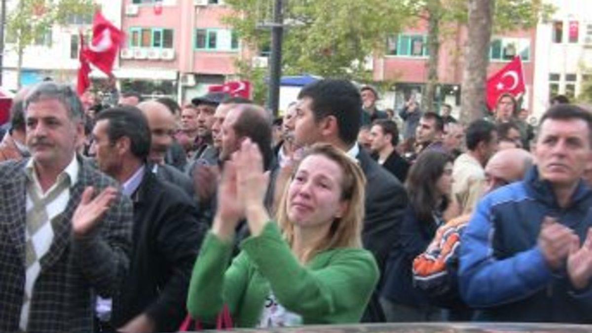 Tekirdağ’ın Çorlu ilçesinde son 2 günde PKK’nın yaptığı teröre tepki mitingi yapıldı. Çorlu Belediyesi önünde yapılan mitinde 3 bin civarında vatandaş katıldı, şehitler için dualar edildi.
