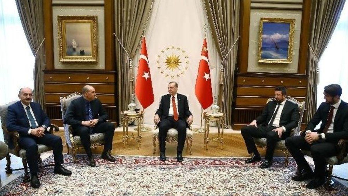 Cumhurbaşkanı Recep Tayyip Erdoğan, Türkiye Basketbol Federasyonu Başkanı Harun Erdenay ile milli takım oyuncularını kabul etti.Cumhurbaşkanı Erdoğan, Türkiye Basketbol Federasyonu Başkanı Harun Erdenay ve A Milli Basketbol Takımı oyuncularını Cumhurbaşkanlığı Külliyesi’nde kabul etti. "9 Şubat Sigarayı Bırakma Günü" dolayısıyla Cumhurbaşkanlığı Külliyesi’nde verilen resepsiyona katılan milli takım heyeti, Cumhurbaşkanı Erdoğan’ın sigarayı bırakma çağrısına destek verdi.