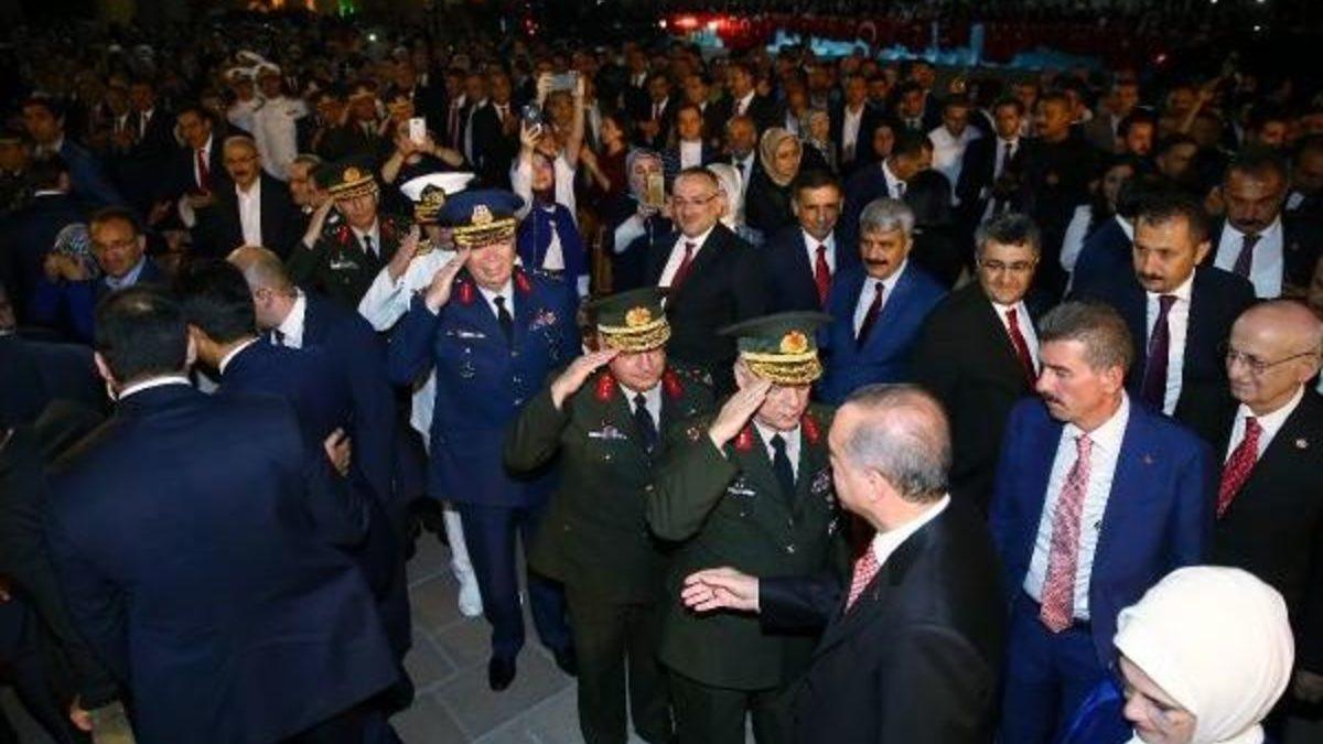Erdoğan, "Türkiye'nin yakın tarihinde yaşadığı en büyük ihanet işgal ve darbe girişimi olan 15 Temmuz'un birinci yıl dönümü vesilesiyle buluştuk. Türk milleti 15 Temmuz'da herhangi bir topluluk değil tam anlamıyla millet olduğunu hem de nasıl bir millet olduğunu tüm dünyaya göstermiştir. 15 Temmuz hep beraber gördük ki küllerin altında kor bir ateş yanıyor. Vakti saati geldiğinde o kor ateş istiklaline ve istikbaline el uzatan herkesi yakan aleve dönüşüyor. 15 Temmuz'da yedi düveli arkasına alan bir ihanet çetesinin 40 yıllık planını 20 saate kalmadan bozarak tarihimize yeni bir zaferi nakşettik" diye konuştu.