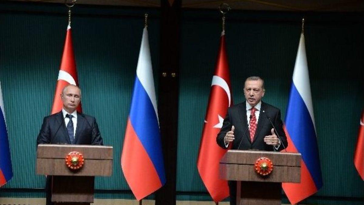 Rusya Devlet Başkanı Vladimir Putin, 1 Ocak itibarıyla Türkiye’ye sattıkları doğalgaz fiyatlarında yüzde 6 indirim sağlayacaklarını söyledi. Cumhurbaşkanı Recep Tayyip Erdoğan, davetlisi olarak Türkiye’ye gelen ve bir dizi temaslarda bulunan Rusya Federasyonu Devlet Başkanı Vladimir Putin ile birlikte Cumhurbaşkanlığı Sarayı’nda ortak basın toplantısı düzenledi.Cumhurbaşkanı Erdoğan ve Putin’in ortak basın toplantısı öncesinde iki ülke arasında, Boru Hatları ile Petrol Taşıma A.Ş (BOTAŞ) ile Gazprom arasındaki mutabakat zaptı, Enerji ve Tabi Kaynaklar Bakanlığı Yenilenebilir Enerji Genel Müdürlüğü ve Rusya Fedarasoynun Enerji Bakanlığı Federal Devlet Bütçe Organizasyonu "Rusya Enerji Ajansı" arasında enerji verimliliği ve yenilenebilir enerji kaynaklarının kullanımına ilişkin mutabakat zaptı, KOSGEB ile Rusya Federasyonu Kalkınma Bakanlığı arasında KOBİ’ler alanında işbirliği mutabakat zaptı, Ekonomi Bakanı Nihat Zeybekçi ile Rusya Ekonomik Kalkınma Bakanı Aleksey Ulyukayev arasında yayımlanacak ortak bildiri, Enerji ve Tabii Kaynaklar Bakanlığı ile Rusya Federasyonu Atom Enerjisi Devlet Kurumu Rosatom arasında nükleer enerji ile ilgili alanlarda personel yetiştirilmesine yönelik mutabakat zaptı, Türk - Rus hükümetlerarası karma ekonomik komisyonu 13. Dönem toplantısı protokolü, Türkiye Cumhuriyeti Hükümeti ile Rusya Federasyonu hükümeti arasında çalışma, sosyal güvenlik ve istihdama dair mutabakat zaptı ve Türkiye Cumhuriyeti hükümeti ile Rusya Federasyonu arasında cezai konularda adli yardımlaşma ve suçluların iadesine yönelik anlaşma imzalandı.Anlaşmaların imzalanmasının ardından kameraların karşısına geçen iki lider açıklamalarda bulundu.Rusya Devlet Başkanı Vladimir Putin ve heyet üyeleriyle çok verimli görüşmeler gerçekleştirdiklerini belirten Cumhurbaşkanı Erdoğan, Putin’in 2 yıl aradan sonra tekrar Türkiye’de misafir etmekten büyük bir memnuniyet duyduğunu ifade etti.Cumhurbaşkanı Erdoğan, Türkiye ile Rusya ilişkilerindeki atılımın ve yakınlığı nişanesi olarak 2010 yılında kurulan Üst Düzey İşbirliği Konseyi’nin (ÜDİK) 5. toplantısını gerçekleştirdiklerini belirterek, geçen toplantıdan bu yana ikili planda hangi adımların atıldığı, hangi başlıklarda ilave gayret gerektiği gibi hususları ilgili bakanların tespit ve izahatları çerçevesinde değerlendirdiklerini kaydetti.“2023 YILINA KADAR HEDEF 100 MİLYAR DOLAR”Türkiye ile Rusya ile arasında 2013’te yıllık 32 milyar dolarlık bir ticaret hacminin gerçekleştiğini vurgulayan Cumhurbaşkanı Erdoğan, bunu yeterli görmediklerini ve bu ticaret hacminin 2023 hedefi olarak 100 milyar dolara ulaştırılmasına yönelik siyasi iradenin mevcut olduğuna dikkat çekti.“TİCARET HACMİNDE BİR AÇIKLIK SÖZ KONUSU”İşbirliğiyle ilgili konuları ayrıntılı görüşme imkanlarının olduğunun altını çizen Cumhurbaşkanı Erdoğan, Türkiye’nin ihtiyaç duyduğu doğalgazın yüzde 50’sini Rusya’dan temin ettiğini ve bundan kaynaklı ticaret hacminde farklılık bulunduğunu belirtti.Cumhurbaşkanı Erdoğan, “32 milyar dolardan 25 milyar doları Rusya Federasyonu’nda bize, 7 milyar dolarda bizden Rusya Federasyonu’na. Orada ticaret hacminde bir açıklık söz konusu. Bunun giderilmesi konusunda neler yapabileceğimizi aramızda müzakere ettik. Ortak menfaatler temelinde enerjiden turizme, müteahhitlikten yatırıma işbirliği alanlarını zenginleştirmeyi arzu ediyoruz” dedi.“200 GENCİMİZ RUSYA’DA EĞİTİM ALIYOR”Türkiye’ye gelen turist sayısında Rusların birinci sıraya yükseldiğini ifade eden Cumhurbaşkanı Erdoğan, “Türkiye’de hayata geçirdiğimiz en önemli ve stratejik yatırımlardan biri olan Akkuyu Nükleer Enerji Santrali ile ilgili geniş, detay bir çalışmayı, değerlendirmeyi değerli dostumla aramızda yaptık, 3 yılı aşkın süredir devam eden bu çalışmaların bundan sonraki süreci, dün ÇED’in onaylanmasıyla birlikte daha da artacak. Bu yatırımla ilgili ki bu yatırımın bedeli 20 milyar dolar civarında. Bununla ilgili yine gerek Sayın Başbakan gerek ilgili bakanlarla müşterek çalışmayı yapacağız ve bu müşterek çalışmayla Rusya Federasyonu’nun Türkiye’deki yatırımlarına yönelik bu konudaki hassasiyetlerini aldık, bunları da aramızda değerlendireceğiz. Şu anda gençlerimiz Rusya’da eğitim alıyorlar, 200 civarında gencimiz tekrar Türkiye’ye dönüp bu projeyi ellerine alıp bunu taşıyacaklar, götürecekler. Bunun yanında yeni mühendislerimizi bu ekip yetiştirecek” diye konuştu.“TÜRKİYE-YUNANİSTAN SINIRINDA, TÜRKİYE TOPRAKLARINDA DAĞITIM MERKEZİ OLUŞTURACAĞIZ”Cumhurbaşkanı Erdoğan, “Enerjide atacağımız adımlardan ki bu çok çok önemli, bugüne kadar Güney Akım diye bilinen, ama şu ana kadar şu veya bu nedenlerle engellenen süreçte de bizler bu akşam yaptığımız görüşmelerle birlikte dayanışma içerisinde, herhangi bir hukuki neticesi olmayan, ama bu ön mutabakatla tarafların bir çalışma yapıp, süratle, kısa zamanda neticelendirip bu ön mutabakatı daha sonra kesin bir mutabakata çevirmek suretiyle bir adım atacağız ve bu adımdan Türkiye olarak doğalgaz açığımızda bizler istifade edeceğimiz gibi, Yunanistan sınırında Türkiye topraklarında bir dağıtım merkezi, hat oluşturmayı ve oradan talep neyse bu talebe göre o merkezden cevabın verilmesi noktasında bir ön mutabakatımız var” dedi.“SURİYE, IRAK, KIRIM’I SORUNLARINI ELE ALDIK”Bölgesel sorunların olduğunu ve bölgesel sorunları da Rusya Devlet Başkanı Putin ile ele alma fırsatlarının olduğunu dile getiren Cumhurbaşkanı Erdoğan, özellikle terör örgütlerine yönelik, DEAŞ gibi PKK gibi bunları görüşme imkanlarının olduğunu ifade etti.Suri