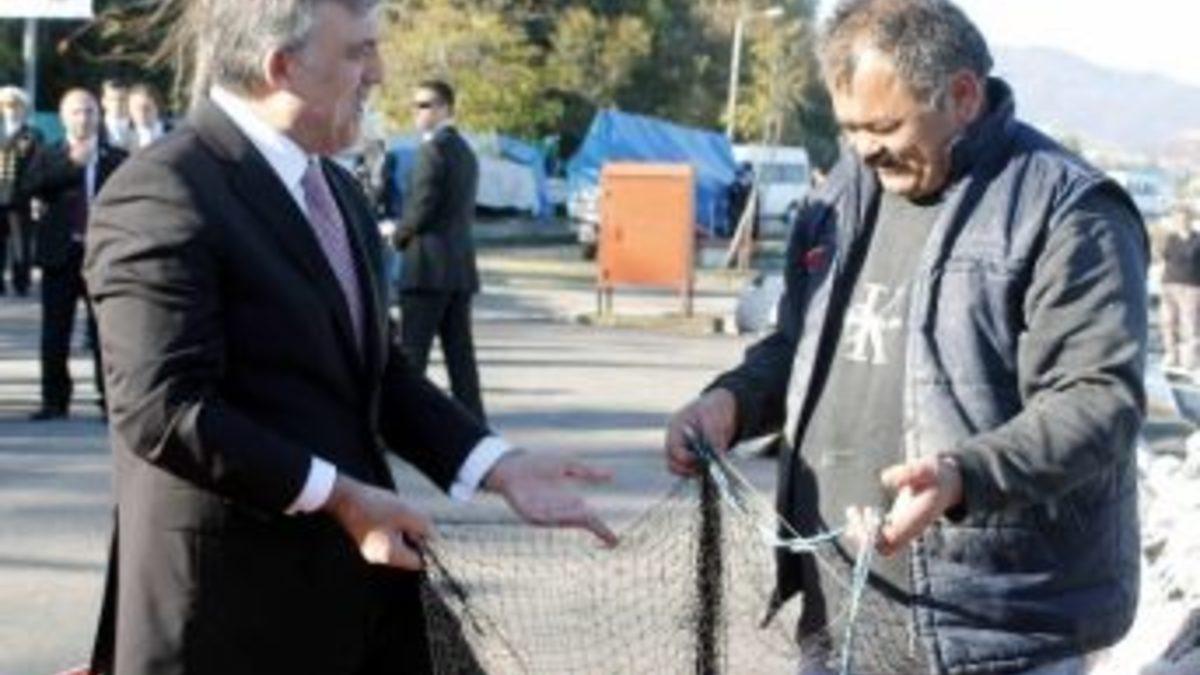 Ordu’da balıkçıları ziyaret eden Cumhurbaşkanı Abdullah Gül, balıkçıların ördükleri ağa ilmek attı.Cumhurbaşkanı Gül, Ordu’da Kumbaşı Balıkçı Barınağı'ndaki balıkçıları ziyaret etti. Ordu ziyaretinin son saatlerinde balıkçılar ile uzun süre sohbet eden Gül, balık ağı ören balıkçıların ağına bir ilmekte kendisi atarken, kasalardaki balıkları da eline alarak basın mensuplarına poz verdi.Balıkçılığın meşakkatli bir iş olduğunu belirten Cumhurbaşkanı Gül, “Biz balığı tutunca yiyoruz. Her mesleğin bir zorluğu var. Şu da bilinen bir şey ki balıkçılık meşakkatli bir iştir. Bir de dalgalı Karadeniz’de olursa, Karadeniz her zaman böyle değildir. Ender böyledir. Karadeniz, Karadeniz türküsünden de biliyorsunuz. ‘Çırpınırdı Karadeniz’ diye. Buralar hep herhalde yılın birçok gününde çırpınır. Orada da bu balıklar avlanır. Allah hepinize bereket versin. Ben balığın hepsini severim” dedi.Balıkçılar ile vedalaşan Gül, daha sonra Türkiye’nin deniz doldurularak yapılan ilk havalimanı olma özelliğini taşıyan Ordu Giresun Havalimanı'nda basına kapalı olarak incelemelerde bulundu. Gül, havaalanını inceledikten sonra Giresun’a hareket etti.