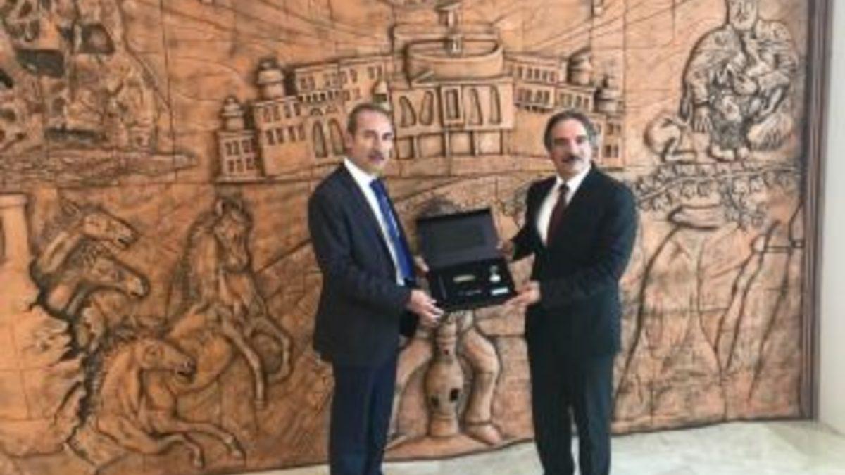Cumhuriyet Üniversitesi Rektörü Prof. Dr. Alim Yıldız, Nevşehir Hacı Bektaş Veli Üniversitesi (NEVÜ) Rektörü Prof. Dr. Mazhar Bağlı’yı ziyaret etti.11. Kalkınma Planı İç Anadolu Bölgesi İstişare Toplantısına katılmak üzere Nevşehir’e gelen Cumhuriyet Üniversitesi Rektörü Prof. Dr. Alim Yıldız, NEVÜ Rektörü Prof. Dr. Mazhar Bağlı’yı makamında ziyaret etti.Rektör Yıldız’a ziyaretlerinden duyduğu memnuniyeti dile getirerek teşekkür eden Rektör Bağlı, kendilerini Nevşehir’de ve üniversitede ağırlamaktan büyük mutluluk duyduklarını ifade etti.Rektör Bağlı ile bir süre görüşen, Şeref Defterine duygu ve düşüncelerini yazan Rektör Yıldız, üniversitenin modern yapılaşmasına hayranlığını dile getirerek ortaya koymuş olduğu başarılı çalışmaların kayda değer olduğunu belirtti.Rektör Bağlı ziyaret sonunda Rektör Yıldız’a günün anısına plaket takdiminde bulundu.