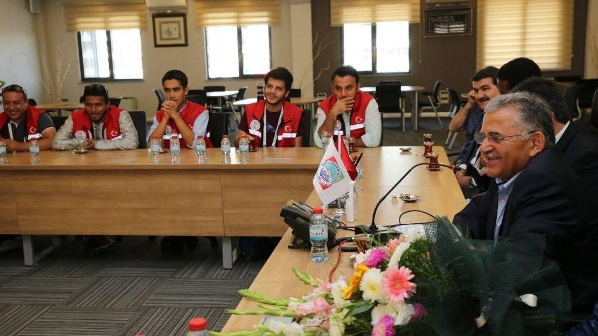 Kayseri Gençlik Hizmetleri ve Spor İl Müdürü Murat Eskici ile Damla Projesi kapsamında ilde bulunan 31 öğrenci Melikgazi Belediyesini ziyaret etti.Proje ile ülkeler arasında diyalog ve nesiller tanışmasının güzel birProje ile ülkeler arasında diyalog ve nesiller tanışmasının güzel bir örneğinin sergilendiğini belirten Melikgazi Belediyesi Başkanı Memduh Büyükkılıç, 15 öğrencinin Türk 16 öğrencinin ise uluslararası olmasının etkinliğe daha da anlam kattığını, toplam 31 öğrenciye Anadolu Kültürü, Belediyenin sosyal çalışmaları, yerel etkinlikler, Anadolu aile yaşamı ve gelenekleri olmak üzere birçok konuda bilgiler verildiğini ve örnekler sunulduğunu kaydetti.Çocuk meclisi çalışmaları en iyi örnekDamla Projesi öğrencilerine ikramında bulunuldu ve toplu hatıra fotoğrafı çektirildi.Damla Projesi öğrencileri Melikgazi Belediyesi Başkanı Büyükkılıç’a, gösterilen misafirperverlik ve projeye sağlamış oldukları katkı ile yapmış oldukları çalışmalardan dolayı teşekkür ettiler.