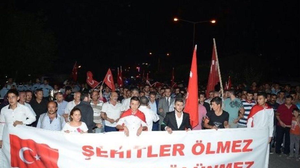 Darende Ülkü Ocakları tarafından Şehide Saygı Teröre Lanet Yürüyüşü düzenlendi.Yürüyüşe MHP Darende İlçe Başkanı Hasan Şentürk, CHP İlçe Başkanı Sinan Sunguroğlu, BBP İlçe Başkanı Ali Gök, Battalgazi İlçe Başkanı Gökhan Şahin, Ülkü Ocağı Başkanı Mehmet Altun, sivil toplum kuruluşları, dernekler, Ülkü Ocakları üyeleri ve yaklaşık 2 bin vatandaş katıldı. Belediye Parkı önünde başlayan yürüyüş Somuncubaba Bulvarı ve tekrar Belediye Parkı önünde son buldu. Yürüyüş sırasında İlçe Emniyet Müdürlüğü önünden geçerken Ocak Başkanı Mehmet Altun, İlçe Emniyet Müdür Vekili Emniyet Amiri Ergül Taşkıran’a Türk bayrağı hediye ederek, başsağlığında bulundu. Yürüyüşe, bayraklarla süslü araç konvoyları da eşlik etti. Şehitler anısına saygı duruşunda bulunularak, İstiklal Marşı okundu. Burada Darende Ülkü Ocakları İlçe Başkanı Mehmet Altun tarafından bir basın açıklaması yapıldı.Altun, “Türk devletinin gücünü, zalim ve karanlık mihrakların hakkından gelmek için seferber etmek gerekmektedir. Hiçbir el ovuşturulmamalı, hiçbir bölücü heveslendirilmemeli ve hiçbir terör sevdalısı heyecana kapılmamalıdır. Bizim ne vazgeçilecek ülkemiz ne milletimiz ne de paylaşacak toprağımız vardır. Vatansever milliyetçi ve ülkücüler, tüm teşkilatlar kenetlenmiş halde gelişmeleri takip etmektedir. Her koşul ve şartta Türk milletinin emrinde ve ayaktadır. Bu vatan hepimizin anası, bu vatan hepimizin babası, bu vatan hepimizin yari, bu vatan hepimizin namusudur. Türk milleti namusu için yaşar ve namusu için şehit olur. Türk milletinin sabrını sınayanlar, gücünü test edenler yenilgi ile mutlaka yüzleşeceklerdir” şeklinde konuştu.Basın açıklamasının ardından ölen şehitler için Kura’n-ı Kerim okundu ve sloganlar atıldı. Ardından grup olaysız bir şekilde dağıldı.