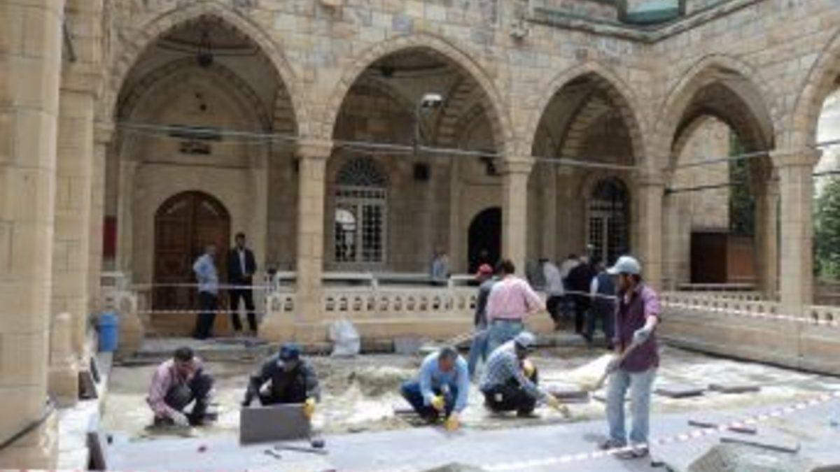 Malatya'nın Darende ilçesindeki Zaimoğlu Camii'nin avlusunda düzenleme yapılıyor.