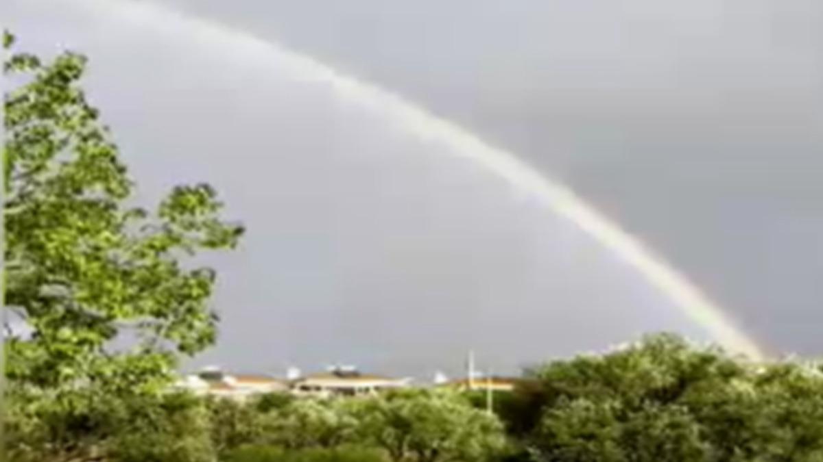 Çift gökkuşağı görenleri hayran bıraktı. Gökkuşağının sunduğu görsel manzara vatandaşlar tarafından cep telefonlarıyla kaydedildi.