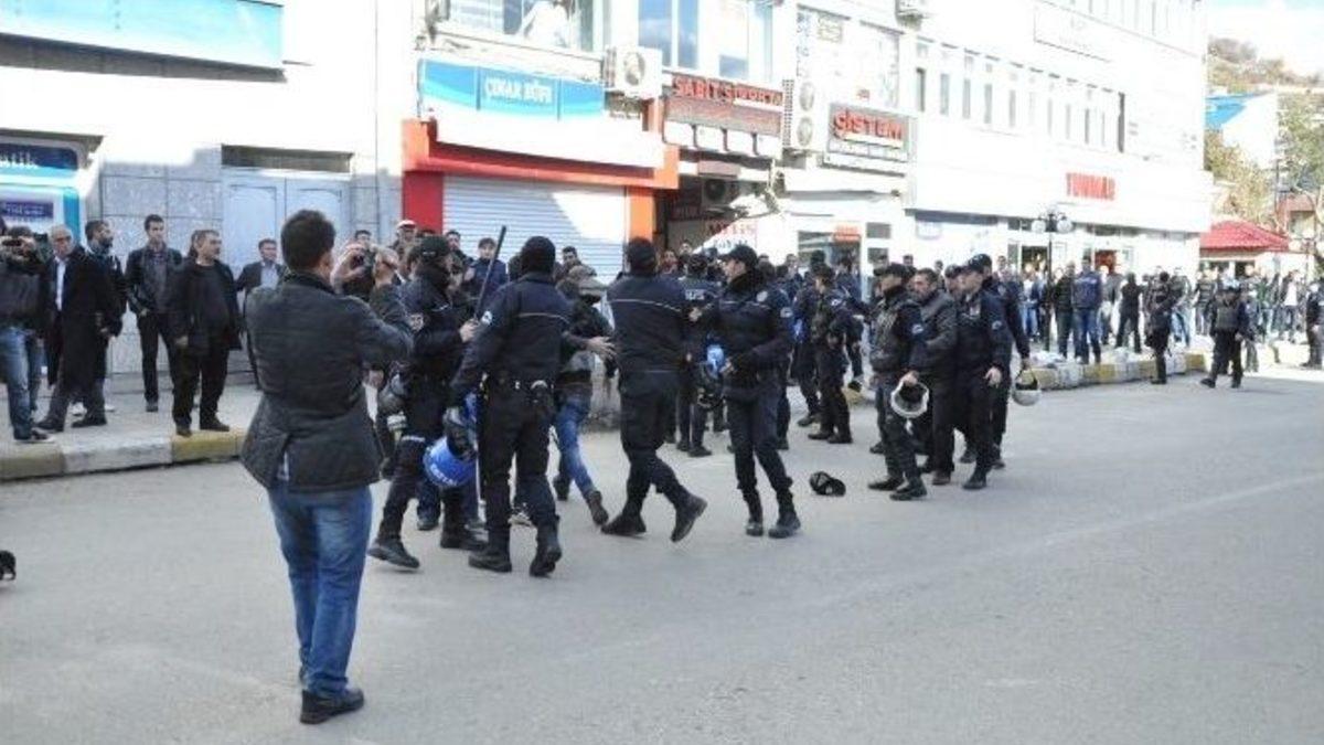 Partisinin merkez ilçe kongresi ve bir dizi ziyaret için Tunceli’ye gelen Başbakan Ahmet Davutoğlu, bir grup tarafından protesto edildi. Polis, gösterici gruba plastik mermi ve biber gazıyla müdahale etti.Erzincan ziyaretinin ardından helikopterle Tunceli’ye gelen Başbakan Ahmet Davutoğlu’nun merkez Moğultay Mahallesi’nde bulunan belediye binasını ziyaret edeceğini öğrenen Demokratik Haklar Federasyonu (DHF) üyesi bir grup, Cumhuriyet Caddesi’ne doğru yürüyüşe geçti. Polis, göstericilerin geçişine izin vermeyince gerginlik yaşandı. Başbakan Ahmet Davutoğlu’nun ziyareti nedeniyle civar illerden ve ilçelerden kent merkezine getirilen çok sayıda polisin müdahalesiyle protestocu grup dağılırken, kent merkezindeki geniş güvenlik önlemleri devam ediyor.Öte yandan kent merkezindeki protesto nedeniyle Başbakan Ahmet Davutoğlu’nun Tunceli Belediyesi’ne yapmayı planladığı ziyaretin iptal edildiği öğrenildi.