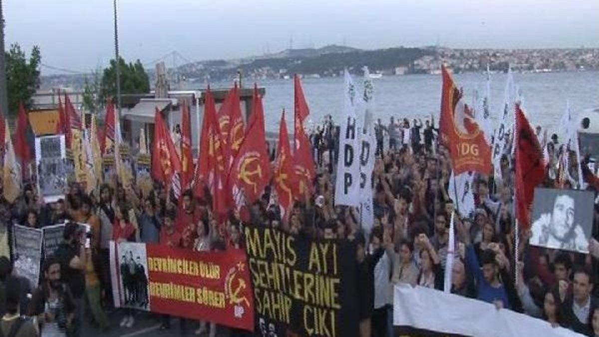 Mehmet AKTARAN / İstanbul, Akşam saatlerinde düzenlenen yürüyüşlerin ilki EMEK Gençliği tarafından yapıldı. Taksim'deki Atatürk Kültür Merkezi (AKM) önünde saat 18.00 sıralarında buluşan Emek Gençliği üyesi bine yakın kişi, ellerinde Deniz Gezmiş, Yusuf Aslan ve Hüseyin İnan posterleri, dövizler ve pankartlar olduğu halde, slogan atarak Gümüşsuyu üzerinden yürüyüşe geçti. Grup, Dolmabahçe'ye yaklaştığında, meşaleler yakarak sloganlar eşliğinde koşmaya başladı. Dolmabahçe Meydanı'na kadar gelen grup üyeleri burada basın açıklaması yaptıktan sonra, denize karanfil atarak anma etkinliğini noktaladı.