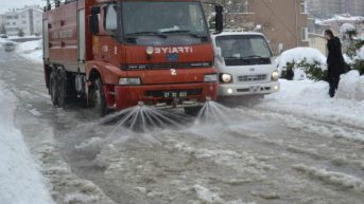 Alaplı’da karlı kaplı yollar deniz suyu ile açılıyor