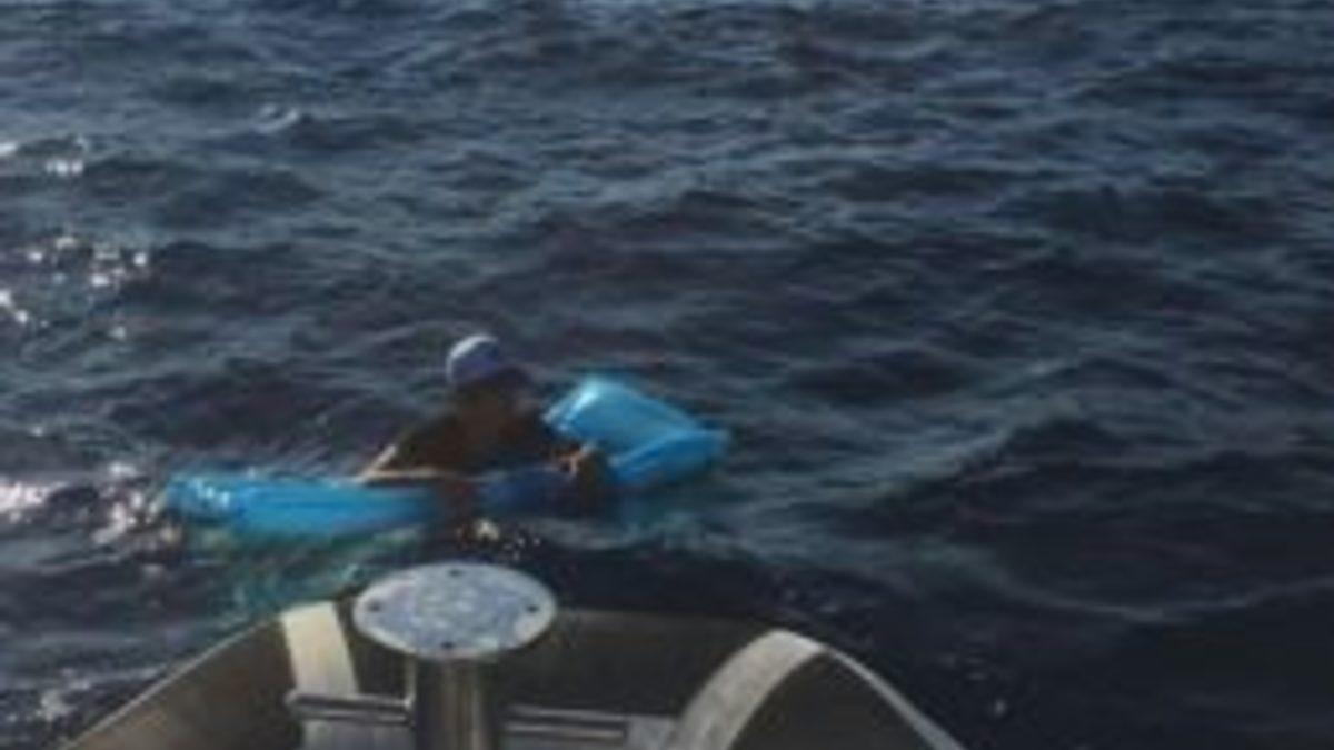 MUĞLA (İHA) – Muğla’nın Bodrum ilçesinden deniz yatağıyla Yunanistan’ın Kos adasına kaçmak isteyen mülteci ölümden döndü.Yasa dışı yollarla Bodrum’dan Yunanistan’ın Kos adasına deniz yatağı ile kaçmak isteyen Suriyeli Muhallim Salem (32) denizde sürüklenmeye başlayınca imdadına Türk Sahil Güvenlik ekipleri yetişti. Akyarlar sahilinden deniz yatağı ile denize açılan Salem, bir süre sonra rüzgarın da etkisiyle sürüklenmeye başladı. Deniz yatağının üzerine kıyafetleri ve kişisel eşyalarını da koyan Salem, bir süre sonra bitkin düştü. Denizde devriye atan Sahil Güvenlik ekipleri, Salem’i kurtardı. Bodrum Devlet Hastanesine götürülen Suriyeli göçmen tedavi altına alındı. Salem’in durumunun iyi olduğu öğrenildi.