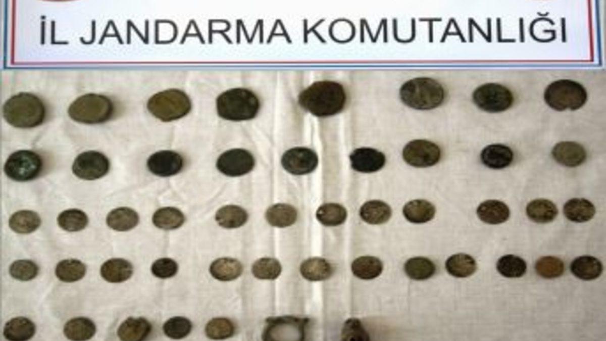Denizli İl Jandarma Komutanlığı Kaklık Jandarma Karakol Komutanlığının önleyici kolluk devriyesi sırasında, bir araç içerisinde yapılan kontrollerde, Roma dönemine ait 48 adet bronz sikke ele geçirildi. Olayla ilgili H.Ç. (46) ve S.T. (52) isimli iki şüphelinin gözaltına alındığı belirtildi.