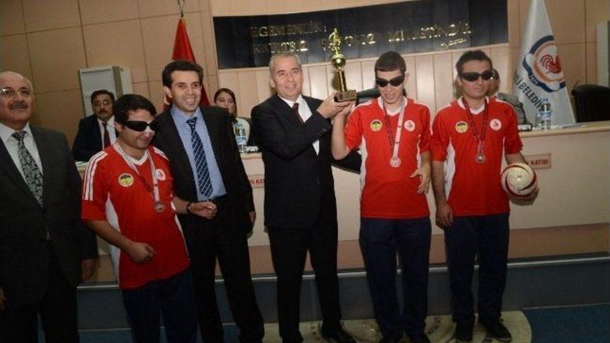 Denizli Belediyesi Kent Konseyi Engelliler Meclisi'ne bağlı Görme Engelliler Futbol Takımı, Türkiye Görme Engelliler Futbol Yükselme Grubu'nda 3. olarak bir üst lig olan 2.Lig'e çıktı.Görme Engelliler Futbol Takımı, Nevşehir'de düzenlenen 12 takımın yer aldığı Türkiye Görme Engelliler Futbol Yükselme maçlarına çıktı. Takım, eşleşme sonucu Kırıkkale ekibiyle 2 kez, Bursa ekibiyle 1 kez ve Başkent Görme Engelliler Takımı (BAGES) ile de bir kez karşılaştı. Maçlarda sadece BAGES'e yenilen takım, grup maçlarında başarılı olarak bir üst lig olan 2. Lig'e çıktı. 2. Lig maçları ise Mayıs ayında yapılacak. Ocak ayında ise maçların oynanacağı şehir belirlenecek.Kent Konseyi Engelliler Meclisi Başkanı Öztürk Özkan’ın önderliğindeki futbol takımı kupa sevincini Denizli Belediye Başkanı Osman Zolan ile paylaştı. Başkan Zolan, görme engellilerin spor yapmasına hiç bir şeyin engel olamayacağını kaydederek, "Engelli futbolcularımız bunu en güzel şekliyle bizlere gösterdi. Başarılı olan takımımızın yönetimine ve futbolcularına teşekkür ediyorum. Sizleri kutluyorum. Yeni ligde başarılar diliyorum. Sizler, istenmesi durumunda nelerin başarılabileceğini bizlere gösterdiniz" dedi.Engelliler Meclisi Başkanı Özkan da görme engelliler federasyonu tarihinde ilk kez bir Denizli takımının 2. Lig'de yer aldığını söyledi.
