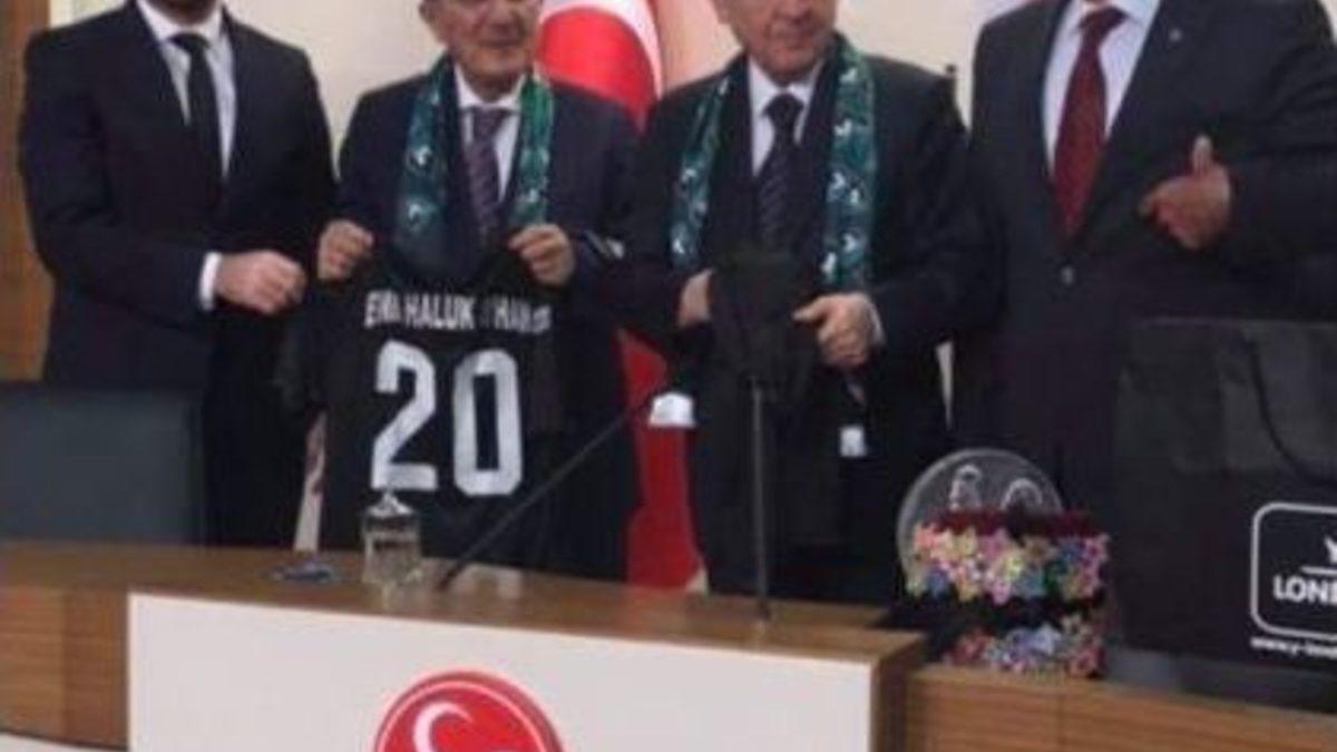 TFF 1. Lig ekiplerinden Denizlispor’un Başkan Yardımcısı Mehmet Uz, Milliyetçi Hareket Partisi (MHP) Genel Başkanı Devlet Bahçeli’yi ziyaret ederek, forma hediye etti.TFF 1. Ligde mücadele eden Denizlispor’da Kulüp Başkan Yardımcısı Mehmet Uz, MHP Genel Başkanı Devlet Bahçeli’ye bir ziyaret gerçekleştirdi. Uz, ziyarette yeşil-siyahlı formayı MHP Başkanı Bahçeli’ye hediye etti. Ziyarete Mehmet Uz’un yanı sıra Genel Başkan Yardımcısı ve Denizli Milletvekili Emin Haluk Ayhan ve MHP Denizli İl Başkanı Cafer Birtürk, eşlik etti. Yanındakilerle birlikte Ankara’daki MHP Genel Merkezi’ne giden Uz, Bahçeli’ye üzerinde horoz amblemi bulunan siyah renkli Denizlispor forması ve kaşkol hediye etti. MHP Genel Başkanı Devlet Bahçeli ise ziyaretten duyduğu memnuniyeti dile getirerek, Denizlispor’a başarılar diledi.