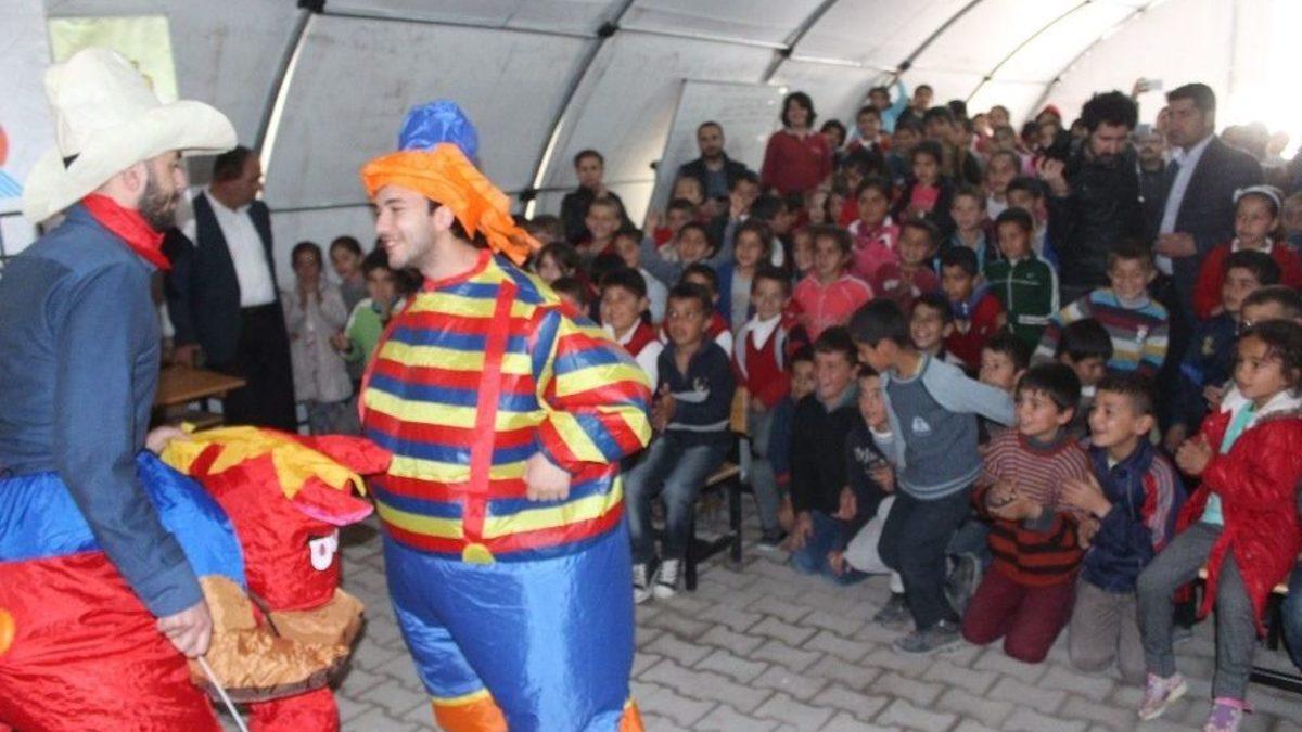 Adıyaman’ın Samsat ilçesinde 2 Mart tarihinde meydana gelen deprem dolayısı ile çadır sınıflarda eğitim gören ilkokul öğrencilerine gösteri ve tiyatro gösterisi sunuldu.Samsat İlçe Milli Eğitim Müdürlüğü ile GAP Bölge Kalkınma İdaresi işbirliği ile Çocuk Gelişim Merkezi Projesi kapsamında, Öncü Çocuk Tiyatro ve Gösteri Grubunun sahnelediği "Tom ve Jerry" oyunu ilgi ile izlendi. Palyaço ve kovboy gösterileri ile müzikli dansların da yer aldığı programda öğrenciler doyasıya eğlendiler.Samsat Merkez İlkokulu ve Taşkuyu İlkokulu çadır sınıflarında sahnelenen oyunlarda depremzede öğrenciler moral bulurken, biraz olsun deprem psikolojisinden uzaklaşarak eğlendiler.Konu ile ilgili olarak bir açıklama yapan Samsat İlçe Milli Eğitim Müdürü Abdullah Akın, Samsat ilçesinde meydana gelen depremde en fazla çocukların etkilendiğini belirterek sosyal ve kültürel faaliyetlerle bunu telafi etmek istediklerini belirtti.Müdür Akın, "Doğal olarak çocuklarımız depremden çok etkilendiler. Halen hayatlarını ve eğitimlerini çadırlarda sürdürmektedirler. Çocukların deprem psikolojisinden uzaklaştırmak için sık sık sosyal ve kültürel faaliyetler yapmaya gayret gösteriyoruz. GAP İdaresi’nin bu projesi çocuklarımız için yararlı oldu. Daha çok faaliyet için çalışmalarımız devam ediyor" dedi.