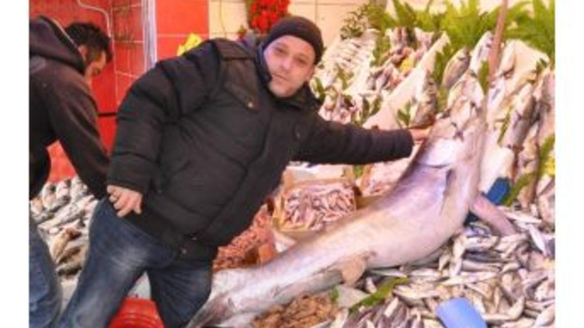 Eskişehir’de bir balıkçı tezgahına konulan dev kılıç balığına vatandaş yoğun ilgi gösterdi.Taşbaşında bulunan bir balıkçı tezgahına getirilen 250 kilogramlık dev kılıç balığı vatandaşın ilgisini kısa sürede çekti. Dev kılıç balığını gören bazı vatandaşlar hatıra fotoğrafı çektirdi. Balık bir süre sergilendikten sonra satışa sunulacak. İşletme çalışanı Tuncay Avcu, balığın Karadeniz bölgesinden geldiğini, kilosunu 40 liradan satacaklarını söyledi.