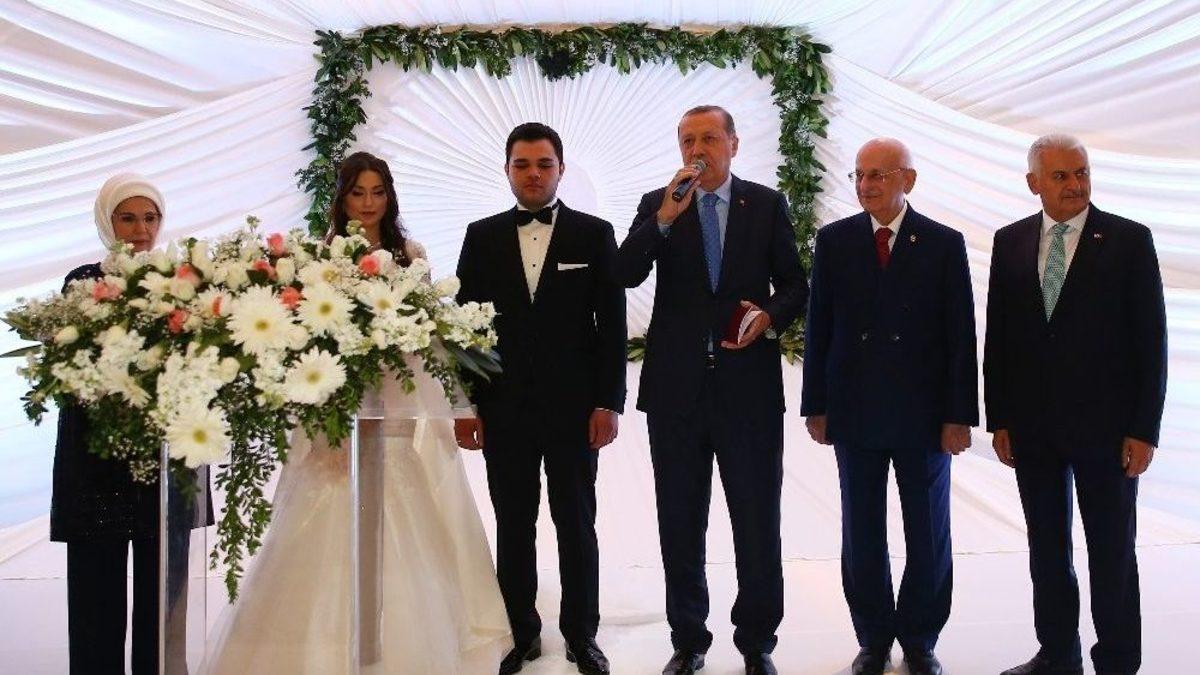 Başbakan Yardımcısı Veysi Kaynak’ın oğlu Yusuf Kenan Kaynak ve Ayşe Bilge Öztürk’ün nikah töreninde devletin zirvesi bir araya geldi.Başbakan Yardımcısı Veysi Kaynak’ın oğlu Yusuf Kenan Kaynak, hayatını Ayşe Bilge Öztürk ile birleştirdi. Grand Ankara Otel’de gerçekleştirilen törende Ankara Büyükşehir Belediye Başkanı Melih Gökçek’in nikahlarını kıydığı çiftin şahitliklerini, Cumhurbaşkanı Recep Tayyip Erdoğan, eşi Emine Erdoğan, TBMM Başkanı İsmail Kahraman ve Başbakan Binali Yıldırım yaptı. Törende Başbakan Yardımcısı Numan Kurtulmuş, bakanlar ve çok sayıda milletvekili katıldı.Çifte, iki dünya saadeti dileyen Erdoğan, “Evlilik uzun bir yolculuk. İyi günler, kötü günler var. Mutluluklar paylaştıkça çoğalır fakat olumsuzluklar da sabrettikçe mutluluğa dönüşür. İnşallah bu yolculukta bunlara hassasiyetle dikkat etmek suretiyle inanıyorum ki mutlu bir yuvayı milletimize kazandırmış oluruz. Yine her yerde tavsiyemdir, bir olur garip olur, iki olur rakip olur, üç olur denge olur, dört olur bereket olur. Gerisi Allah kerim” şeklinde konuştu.Erdoğan, "Aradığın zaman rahat bulursun" diyerek aile cüzdanını geline verdi.