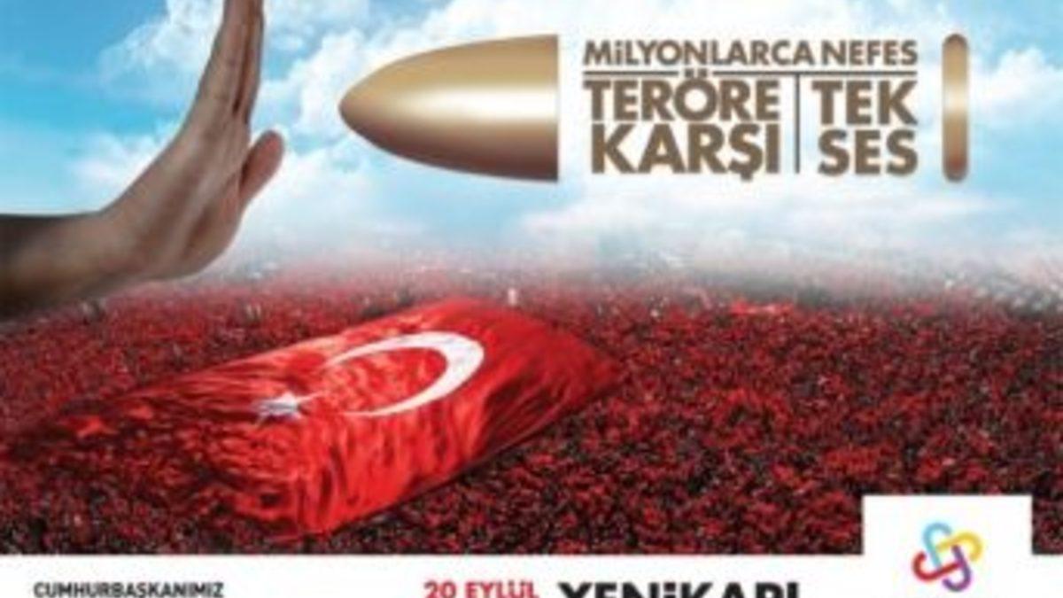 İstanbul’da 20 Eylül Pazar günü Cumhurbaşkanı Recep Tayyip Erdoğan, TBMM Başkanı İsmet Yılmaz ve Başbakan Ahmet Davutoğlu’nun katılımıyla “Milyonlarca Nefes Teröre Karşı Tek Ses” mitingi yapılacak.Sivil Dayanışma Platformu tarafından düzenlenen “Milyonlarca Nefes Teröre Karşı Tek Ses” mitingi, Yenikapı miting alanında 16.00-19.00 saatleri arasında gerçekleştirilecek. Programa Cumhurbaşkanı Recep Tayyip Erdoğan, TBMM Başkanı İsmet Yılmaz ve Başbakan Ahmet Davutoğlu da iştirak edecek.Mitingle ilgili yarın İstanbul Haliç Kongre Merkezi’nde bir basın açıklaması yapılacak. Galata Salonunda gerçekleştirilecek açıklama saat 11.00’de başlayacak.