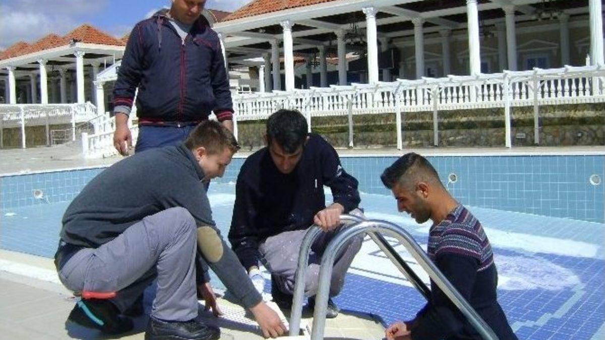 Aydın’ın Didim ilçesinde Milli Eğitim Müdürlüğü Meslek Eğitim Merkezi tarafından ilçede turistik tesislerinde havuz bakımını yürüten teknik elemanlara yönelik “Havuz Suyu Operatörlüğü” kursu düzenlendi.Didim Meslek Eğitim Merkezi eğitmeni Cengiz Karataş eşliğinde ilçede havuz bakımı çalışanlarına yönelik başlatılan 48 saatlik “Havuz Suyu Operatörlüğü” kursunda teorik derslerde kursiyerlere havuzların bakımı, işletilmesi ve kullanımı hakkında makine ve elektrik bilgilerinin yanı sıra havuzlarda kullanılan kimyasallar ile ilgili bilgiler verildiği belirtildi.Didim Tarhan Majesty Turizm Tesisi Salonun da düzenlenen kursta eğitici olarak katılan Cengiz Karataş, hijyen kuralları ve genel sağlık bilgileri ile ilk yardım derslerinde verildiğini belirterek, teorik derslerin ardından havuz başında havuz suyunun hazırlanması ve havuz makine dairesinde kursiyerlere bire bir pratik eğitimlerin de verildiğini kaydetti.Karataş. Kursun ardından düzenlenen sınavda başarı gösteren kursiyerlere “Havuz Suyu Operatörlüğü” sertifikası verileceğini belirtti.