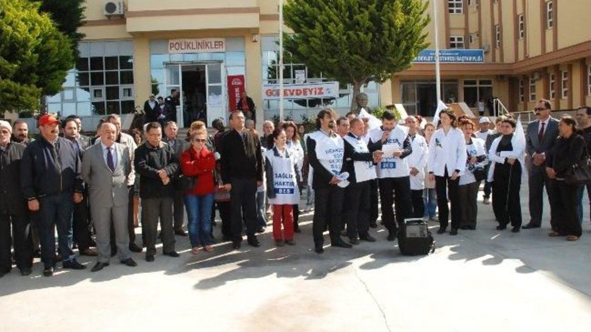 Türkiye genelinde sağlıkta şiddet ve sorunlara dikkat çekmek için gerçekleşen eylem kapsamında Didim’de de hekimler ve sağlık çalışanları bir günlük iş bıraktı.