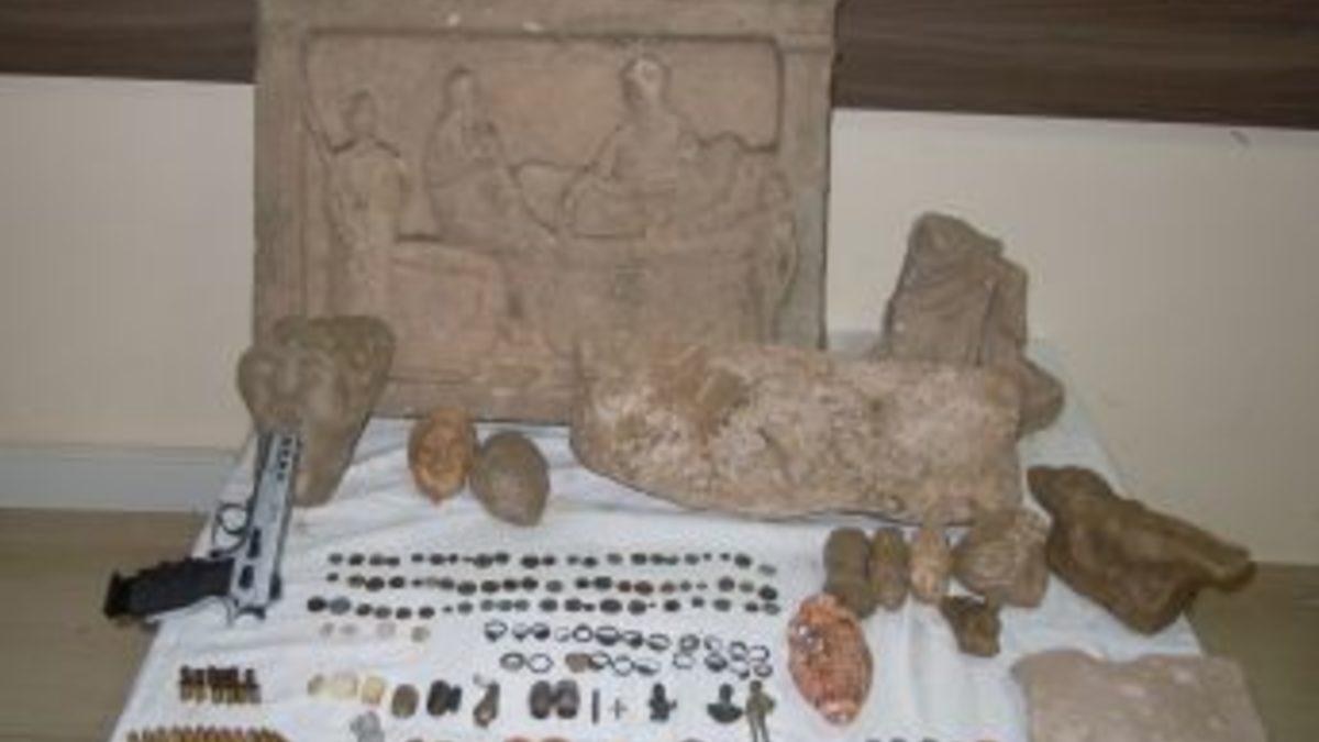Didim'de İlçe Emniyet Müdürlüğü Kaçakçılık ve Organize Suçlarla Mücadele grup amirliği ekipleri Didim-Söke yolu Abalı kavşağında şüphelendikleri bir aracı durdurarak inceleme yaptı. Araç içinde yapılan aramada, aracın arka bagaj kısmında tarihi eser olduğu değerlendirilen 198 parça metal sikke, toprak sikke, mermerden lahit parçaları, metal figürler ve bir adet ruhsatı ibraz edilemeyen ve yapılan bilgisayar sorgulamasında ruhsat olduğuna dair bir bilgi bulunamayan tabanca, tabancaya ait bir adet şarjör ile içerisinde 14 adet dolu, 12 adet boş fişekler ele geçirildi. Bulunan tarihi eserlere el konulurken, R.D.(37) isimli şahıs yakalanarak gözaltına alındı. R.D., emniyetteki ilk ifadesinin ardından adliyeye sevk edildi.
