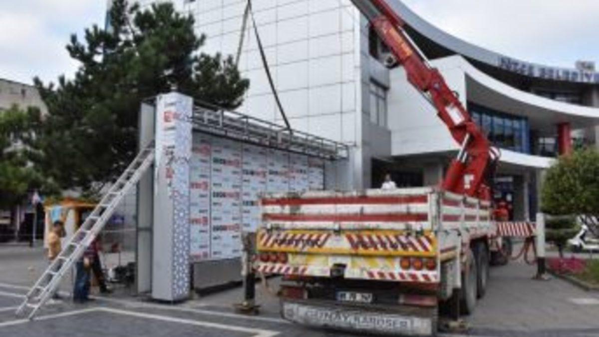 Düzce Belediyesi tarafından belediye meydanına ‘Dijital Su Perdesi’ kuruluyor. Düzce Belediyesi Destek Hizmetleri Müdürlüğü tarafından şehir görselleri çeşitlendiriliyor. Belediye meydanındaki dijital su perdesinin belediye meydanına montajı yapılıyor.İstanbul caddesi üzerindeki aydınlatma ve süs aparatlarının ardından bu kez de belediye meydanına dijital su perdesi yerleştiriliyor. Süs takı üzerinde ayrıca 60 metrekarelik dikey bahçe uygulaması da yer alacak. D-100 karayolu üzerinde de 560 metrelik ferforce korkuluklarının da sayısı artırılacak.