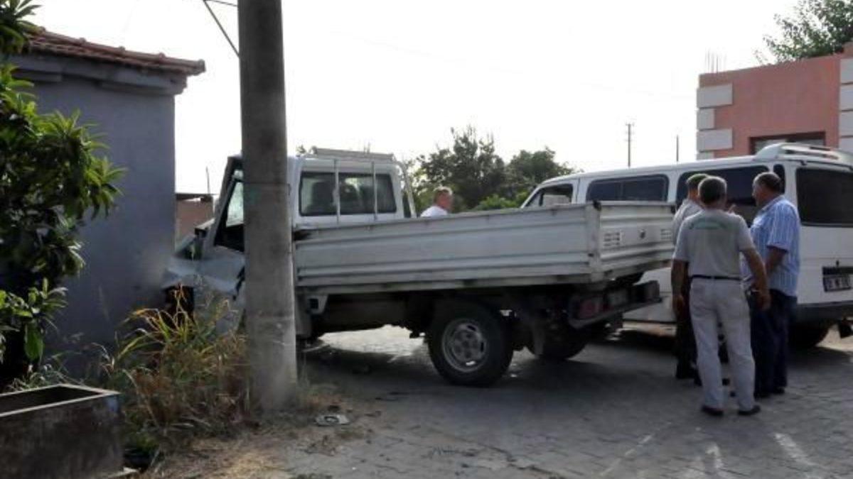 Murat GÜRKAN/NAZİLLİ Kaza, Güzelköy Mahallesi'nde meydana geldi. Aşağı Yakacık Mahallesi'nde oturan inşaat ustası Mehmet Kurt, yönetimindeki 09 RE 799 plakalı kamyonetiyle malzeme almak için Nazilli'ye hareket etti. Üçkuyular Mevkii'ne gelen Kurt, kamyonetin arkasından ses geldiğini duydu. Ne olduğunu anlamak için dikiz aynas yerine geriye dönerek camdan bakan Kurt, kamyonetin kontrolünü yitirdi. Yol kenarındaki elektrik direğine çarpan kamyonet savrulup, bir evin duvarına çarparak durabildi.