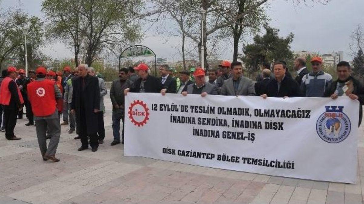 Yeşilsu Meydanında düzenlenen eyleme, DİSK Gaziantep Bölge Temsilcisi Nihat Bencan ve DİSK üyeleri katıldı. Grup adına basın açıklamasını okuyan DİSK Gaziantep Bölge Temsilcisi Nihat Bencan, “Sendikamızın Ankara’da bulunan Genel Merkez binası ve aynı binada hizmet veren Ankara Bölge Temsilciliğinin kapıları kırılarak, arama yapılma bahanesi hiçbir kimsenin yakalanmaması, gözaltına alınmaması, yapılan uygulamanın ne kadar hukuk dışı bir uygulama olduğunu göstermektedir" dedi.
