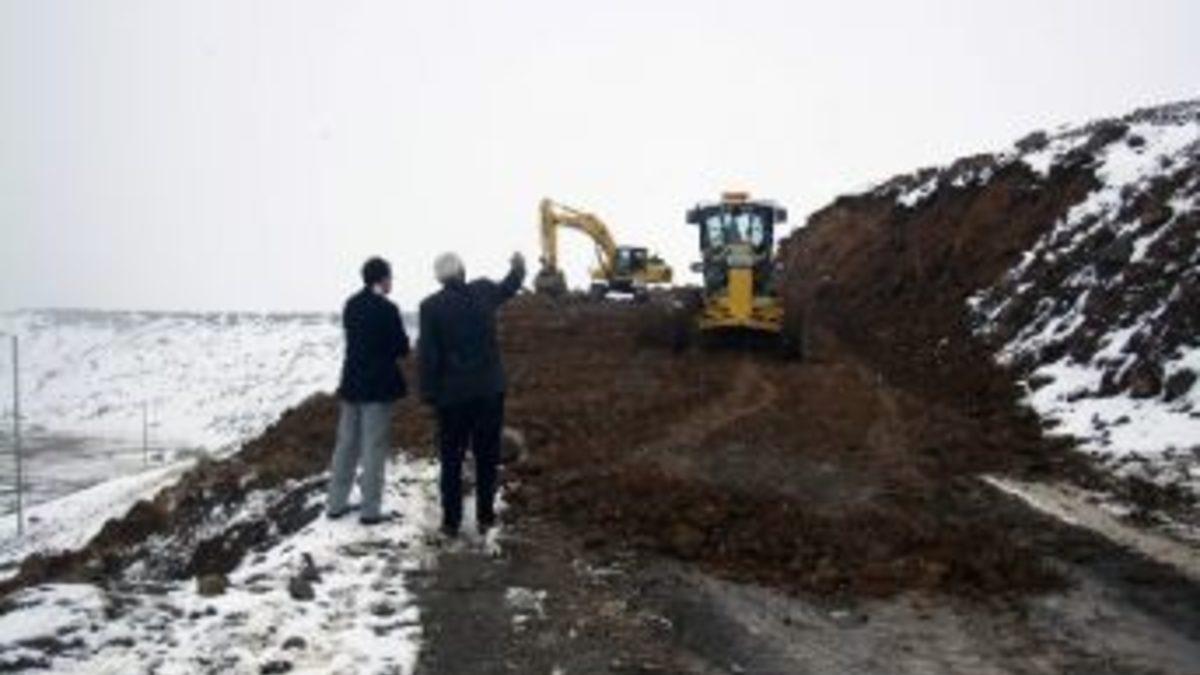 Ağrı'nın Diyadin Kaymakamı Serdar Arslantaş, ilçeye bağlı köylerde yapımı devam eden yol genişletme çalışmalarını yerinde inceledi.