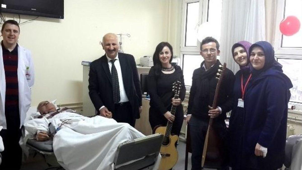 Hendek Devlet Hastanesi, Hemodiyaliz Ünitesi’nde tedavi gören hastalara canlı müzik eşliğinde moral günü düzenledi.12 Mart Dünya Böbrek Günü etkinlikleri çerçevesinde canlı müzik dinletisiyle hastalarına moral veren Hendek Devlet Hastanesi, hasta ve hasta yakınlarına moral oldu. Başhekimi Op. Dr. Celalettin Akyol ve ekibi, Hemodiyaliz Ünitesini ziyaret ederek hasta ve hasta yakınlarıyla bir süre sohbet ettiler. Daha sonra Hemşire Nil Yelken ve Öğretmen Samet Özdemir’in bağlama ve gitar eşliğinde söylediği şarkılarla moral bulan hasta ve hasta yakınları düzenlenen müzik dinletisinden memnun oluklarını ifade ederek hastane yönetimine gösterdikleri ilgiden dolayı teşekkür ettiler.