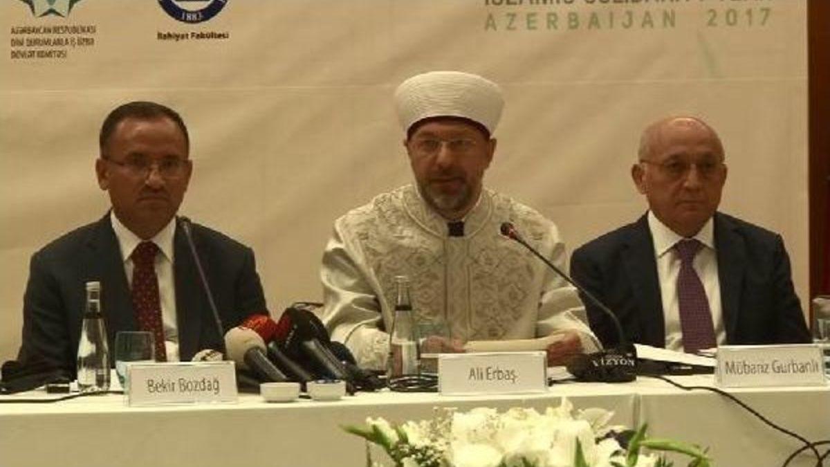 Türkiye ile Azerbaycan arasındaki din hizmeti ve eğitimi alanında karşılıklı dayanışma, yardımlaşma anlayışının işbirliği içinde sürdüğünü anlatan Erbaş, "Türkiye ile Azerbaycan arasındaki İslam dayanışmasının en güzel örneklerinden birisinin Bakü Devlet Üniversitesi bünyesindeki İlahiyat Fakültesi'dir. Azerbaycan Respublikasının neredeyse kuruluşuyla birlikte karşılıklı protokollerle faaliyet göstermeye başlayan İlahiyat Fakültesi'nde aynı fakülte mezunu Azerbaycanlı gençler Türkiye'de yüksek lisans ve doktoralarını tamamlayıp hoca olarak göreve başlayana kadar, Türkiye'den alanında uzman hocalar Diyanet İşleri Başkanlığımız aracılığıyla destek olmuşlardır. Şimdiye kadar 800'ün üzerinde mezun veren İlahiyat Fakültesinde 50'nin üzerinde doktorasını tamamlamış akademisyen, ilim adamı yetişmiştir; bir 50 kadarı da lisans üstü çalışmalarına devam etmektedir" diye konuştu.