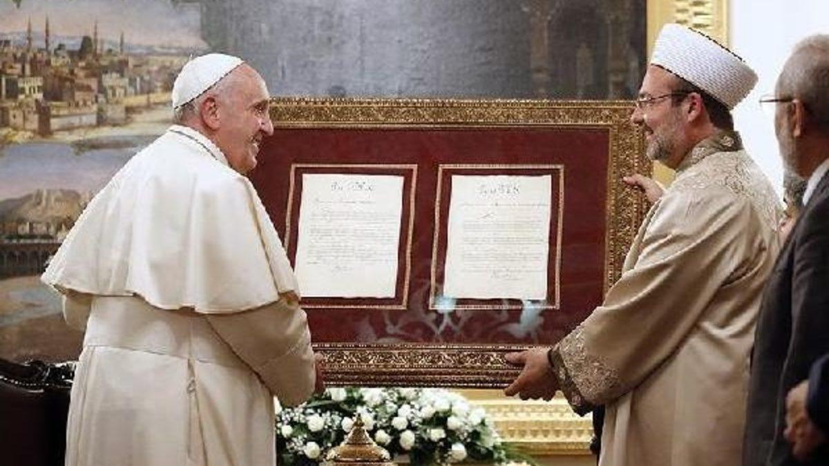 Diyanet İşleri Başkanı Mehmet Görmez, Papa Francesco'ya Papa X. Pius'un Sultan II. Abdulhamit'e gönderdiği mektubun yer aldığı tabloyu hediye ettiği sırasında "Seleflerimizi hayırla yad edelim ki ilişkilerimizi daha iyi noktalara götürelim" ifadesini kullandı. Görmez, ayrıca Papa Papa Francesco'nun heyetindekilere de oltu taşından yapılmış tesbih ve kol düğmesi hediye etti. Papa Francesco da Mehmet Görmez ve yardımcılarına birer hediye verdi.