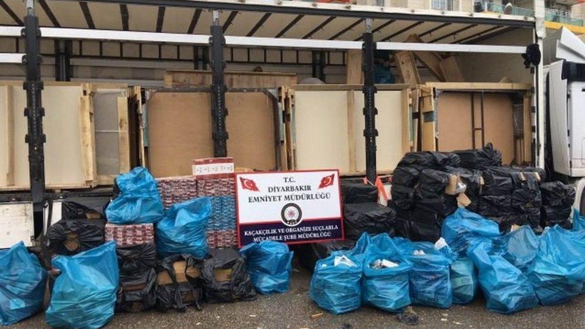 Diyarbakır’da polisin düzenlediği operasyonda 150 bin paket kaçak sigara ele geçirildi.İl Emniyet Müdürlüğü Kaçakçılık ve Organize Suçlarla Mücadele Şubesi ekipleri kente kaçak yollarla sigara getirileceği bilgisini aldı. Merkez Bağlar ilçesi Kamışlı Bulvarında durdurulan bir kamyonda gizli bölmelere yerleştirilmiş yaklaşık 150 bin paket kaçak sigara ele geçirildi. Olayla ilgili inceleme başlatıldı.