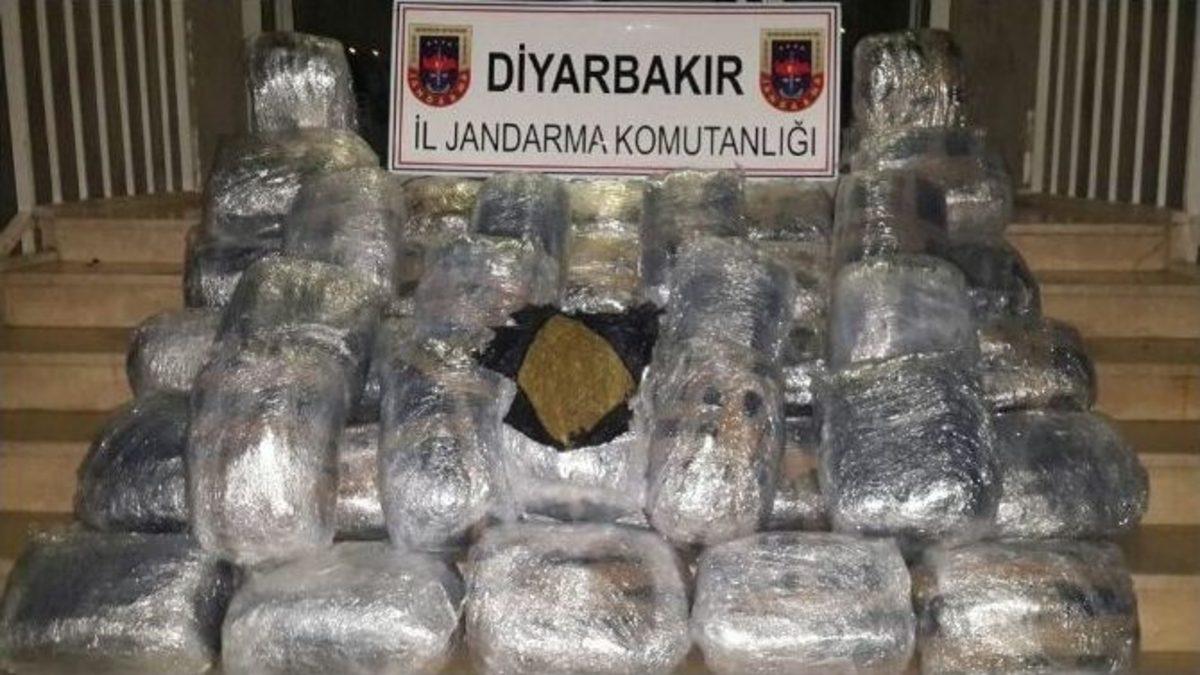 Diyarbakır İl Jandarma Komutanlığı ekiplerinin yaptığı çalışmada, 175 kilogram esrar ele geçirildi.Konuya ilişkin Diyarbakır Valiliği’nden yapılan açıklamada, İl Jandarma Komutanlığı KOM Şube Müdürlüğü ve Sur/Merkez İlçe Jandarma Karakol Komutanlığınca kaçakçılık ile mücadele kapsamında yol kontrol ve arama faaliyeti yapıldığı belirtildi. Açıklamada, “İcra edilen yol kontrol ve arama faaliyeti esnasında, özel bir otomobilde yapılan kontrol neticesinde bagaj ve arka koltuklar üzerinde poşetler içerisinde 175 kilogram kubar esrar ele geçirilmiştir. Cumhuriyet Savcılığının talimatı ile ele geçirilen uyuşturucu maddelere el konulmuş, olay ile ilgili olarak 3 şüpheli gözaltına alınmış, gözaltına alınlardan 2 şüpheli çıkarıldığı mahkemece tutuklanarak cezaevine konulmuştur. Halkımızın huzur ve güvenliğinin sağlanması ve uyuşturucu ile mücadele kapsamında yürütülen çalışmalara kararlılıkla devam edilecektir” denildi.