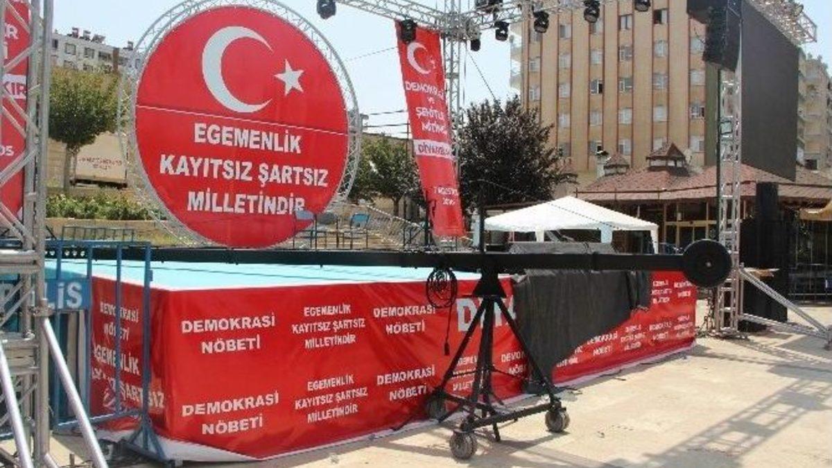 Diyarbakır’ın merkez Kayapınar ilçesinde saat 17.00’de başlayacak ’Demokrasi ve Şehitler Mitingi’ için çalışmalar sürüyor. Yoğun güvenlik önlemlerinin alındığı mitingde 2 bin polis görev yapacak.Diyarbakır’ın merkez Kayapınar ilçesinde bulunan Parkorman’da, bugün saat 17.00’de başlayacak olan ’Demokrasi ve Şehitler Mitingi’ için çalışmalar tüm hızıyla sürüyor. Platformun 16 Temmuz’dan bu yana kurulu olduğu parka, ’Vatan sevgisi imandandır’, ’Diyarbakır tek yürek’, ’Tüm Türkiye tek yürek’ yazılı pankartlar asıldı. Geniş güvenlik önlemlerinin de alındığı parkta, miting alanının üç ayrı bölgesine kontrol noktaları kuruldu. Mitingde yaklaşık 2 bin polisin görev alacağı öğrenildi.Alandaki çalışmalarda yer alan Cihannüma Dayanışma ve İşbirliği Derneği Diyarbakır Temsilcisi Alaattin Parlak, Türkiye’nin FETÖ’nün organizasyonuyla darbe girişimi ile karşı karşıya kaldığını belirterek, "Bizler ilk saatlerde Diyarbakır ve Kürt halkı olarak anında gösterilmesi gereken tepkinin verildiğini düşünüyorum. Çünkü 1960, 70 ve 80 darbelerini görmedik. Ancak kitaplarda gördük. Orada hep merak ettiğimiz acaba halk darbelere karşı neden duruş sergilemedi. Bizler 15 Temmuz gecesi daha önceki darbelere karşı durduk. Alanlara çıktık. Beklemediğimiz yoğunlukta ve çoğunlukta halkımız meydanlarda gerekli tepkileri verdi. İnşallah bugün mitingle bu etkinliklerin finalini yapacağız" dedi.
