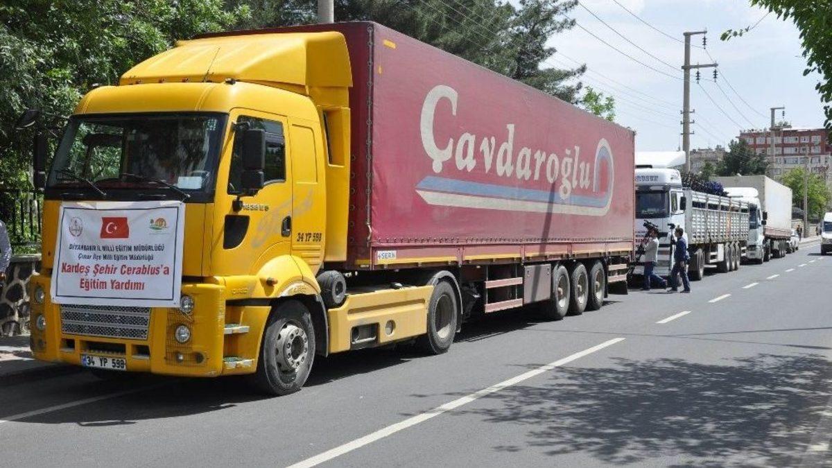 Diyarbakır İl Milli Eğitim Müdürlüğü tarafından Suriye’nin, Cerablus ve El-Bab kentlerinde okuyan öğrenciler için toplanan 15 tır eğitim yardımından 3’ü yola çıktı.Suriye’nin Cerablus ve El-Bab kentlerinde okuyan öğrenciler için Diyarbakır Valiliği ve İl Milli Eğitim Müdürlüğü işbirliğiyle 15 tırlık yardım malzemesi hazırlandı. Hazırlanan 15 tırdan 3’ü merkez Yenişehir ilçesinde bulunan İl Milli Eğitim Müdürlüğü önüne getirildi. Burada bir açıklama yapan İl Milli Eğitim Müdürü Hasan Arslan, Cerablus ve Elbab’da bir insanlık dramının yaşandığını vurgulayarak, “Biz de, Diyarbakır Valiliği ve İl Milli Eğitim Müdürlüğü olarak orada eğitim gören kardeşlerimize 15 tır dolusu yardımımızı hazırlamış durumdayız. Oradaki durumdan dolayı bu 15 tırın hepsini gönderemiyoruz. Bugün ilçe milli eğitim müdürlüklerimizin hazırladığı 3 tırı gönderiyoruz. Tırlarımızda sıra, masa, tahta, kırtasiye malzemeleri, çanta ve giyecek gibi malzemeler bulunmakta. Yardım malzemelerini valimiz Hüseyin Aksoy’un yoğun destekleri ve 17 ilçe milli eğitim müdürlüklerimizin gayretleri sonucunda hazırlamış bulunmaktayız. Umudumuz o ki en kısa zamanda oradaki savaş da sona erer. Bizler yardımsever bir milletin nesilleri olarak buradaki kardeşlerimizin yarasına bir parça merhem için Diyarbakır’da bu yardımlarımızı gönderiyoruz. Tırlarımızın gideceği bölgeden herhangi bir güvenlik problemi yok” dedi.