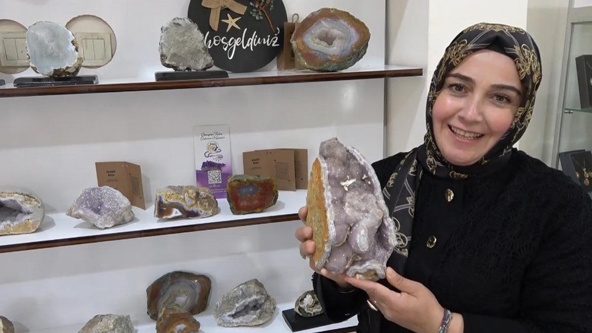 Taşların özelliklerine değinen Türker, "Mor renkli olan ametist taşı alternatif tıpta da kullanılmakta. Vücuttaki negatif enerjiyi ve stresi aldığı, pozitif enerjiye çevirdiği bilinir. Baş ağrısı, migren ve uykusuzluğa iyi geldiği bilinmekte. Bu taşlardan işlediğimiz takıları hem görsel olarak hem de şifasından faydalanmak adına çok talep görüyor. Gittiğimiz fuar ve festivallerde çok yoğun ilgiyle karşılaşıyoruz. Mavi renkli olan taş kalsedon taşıdır. Eski çağlarda Bizanslı avukatların duruşmalara girmeden önce mutlaka kalsedon taşı taktığı öğrendiğimiz bilgilerden. Başarı ve nazar taşı olarak bilinir. Radyasyonu çekmesi, stresi alması ve başarı taşı olması sebebiyle çok rağbet gören taşlarımızdan. Günümüzde ‘Avukat Taşı' olarak biliniyor" dedi.