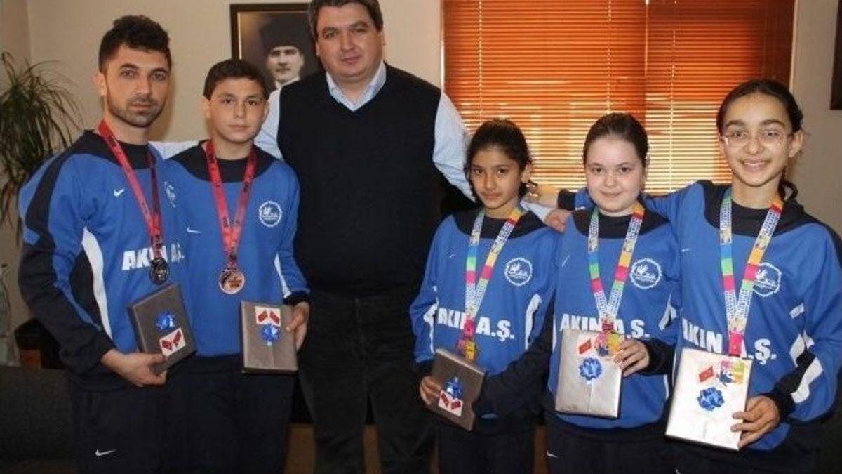 Geçtiğimiz günlerde Antalya’da düzenlenen Avrupa Minikler Şampiyonası ve Uluslararası Turkish Open G1 turnuvasında dereceye giren öğrenciler AK Parti Edremit İlçe Başkanı İsmail Doğdu’yu ziyaret etti. Doğdu, sporcuları tebrik ederek Türk Bayrağı hediye etti.Gençlerin eğitimini üstlenen Eski Avrupa Şampiyonu Milli Antrenör Nejla Ağatekin “7 -8 Şubat ve 13-15 Şubat 2015 tarihleri arasinda Antalya Belek’te yapılan Avrupa Minikler Şampiyonası ve Uluslararası Turkish Open G1 Turnuvası’nda Karagözoğlu İlköğretim Gençlik ve Spor Kulübü ve Edremit Halk Eğitim Merkezi kursunda yetişen sporcularımız üstün başarılara imza atmışlardır. Derece alan sporcularımız Aybüke Pamuk Avrupa Şampiyonu, Ayşenur İnci Avrupa 3.sü, Rümeysa Özben Avrupa 3.sü, Emre Ergit Avrupa 3.sü ve Şeref Firidinoğlu pumse free style kategorisinde 2.ci olmuşlardır. Bu turnuvaya katılımımızda bize maddi ve manevi desteğini esirgemeyen AK Parti Edremit İlçe Başkanı Sayın İsmail Doğdu’ya, Edremit İlçe Emniyet Müdürü Sayın Mustafa Korkmaz’a, Edremit Halk Eğitim Merkezi Müdürüm Sayın İsmail Damar’a ve Mehmet Akın’a teşekkürü borç biliriz” dedi.AK Parti Edremit İlçe Başkanı İsmail Doğdu ise “Bizim böyle yetenekli kardeşlerimize sahip çıkmak görevimiz. Ben Edremitli hemşerilerimiz adına kendilerine, bu gururu bize yaşattıkları için teşekkür ediyorum. Başarılarının artarak devamını bekliyoruz. Bayrağımızı gururla dalgalandıran bu pırıl pırıl gençlerimize, ben de birer Türk Bayrağı hediye ediyorum. Bayrak bizim çok kutsaldır. Onun kıymetini her zaman her yerde bilmemiz gerek” şeklinde konuştu.
