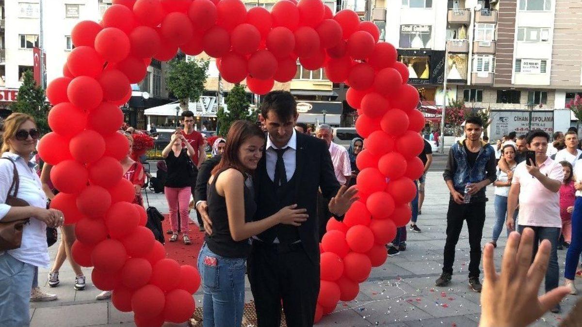 Onlarca miting, konser ve eyleme ev sahipliği yapan Çorlu Atatürk Meydanı bu kez ilginç bir evlenme teklifine sahne oldu.Tekirdağ’ın Çorlu ilçesinde İbrahim Hızarcı adlı genç, sevgilisi Merve Sert’e ilçenin en büyük ve kalabalık meydanı olan Atatürk Meydanı’nda evlenme teklifi etti. Teklif için günler öncesinden hazırlıklara başlayan genç, Atatürk Meydanı’nı kırmızı balonlarla, güllerle ve mumlarla süsledi. Alana bir de kırmızı halı seren İbrahim Hızarcı, kız arkadaşı Merve Sert’e evlilik teklifi etti. Aynı zamanda doğum günü olan genç kız teklifi kabul etti.Gençlerin mutlu anlarına ortak olan yüzlerce kişi de o anları cep telefonlarına kaydetti.