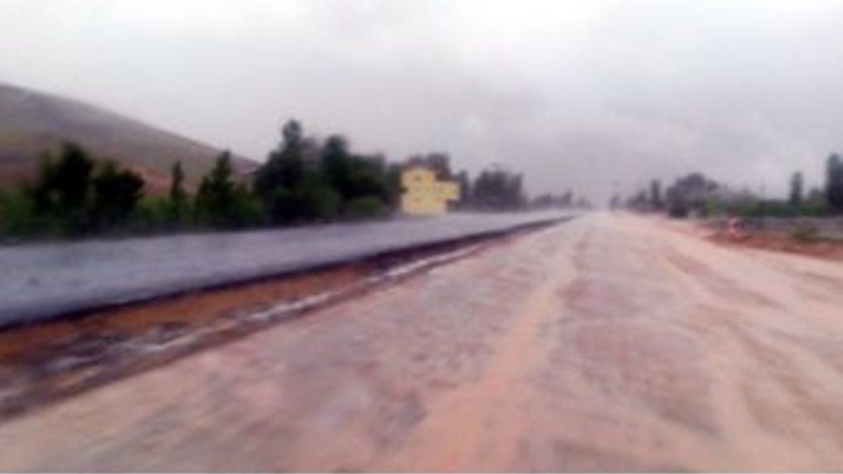 Dolu Yağışı Karayolunu Beyaza Bürüdü