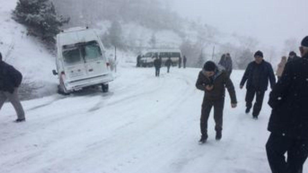Kütahya’nın Domaniç ilçesi ile Bursa’nın İnegöl ilçeleri arasındaki kara yolunda kar yağışı, tipi ve buzlanma...