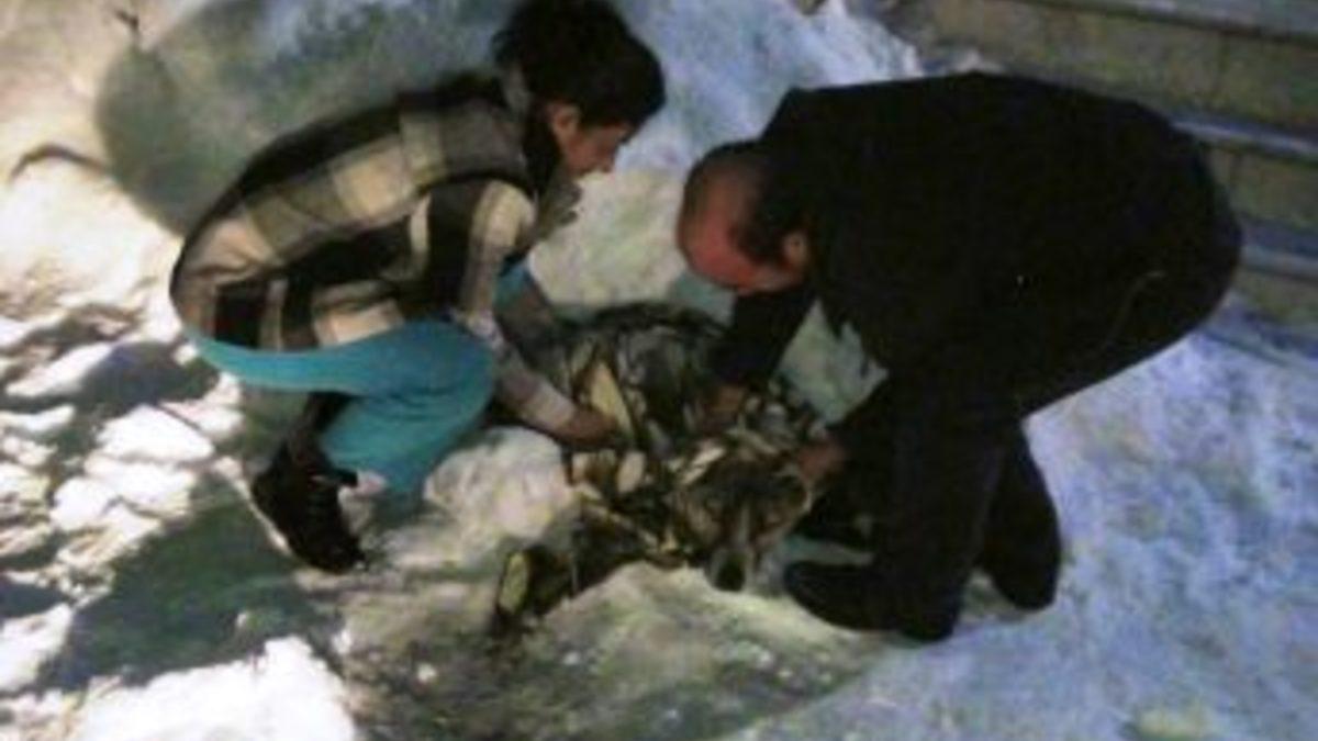 Bitlis - Tatvan karayolu üzerinde araba çarpması sonucu yaralanan ve soğuktan donmak üzere ikisi yavru 3 köpek koruma altına alındı. Gece yarısı araçlarıyla Bitlis’ten Tatvan’a dönen Bitlis’te görevli yerel ve ulusal ajans muhabirleri yol kenarında donmak üzere olan yaralı köpek ve 2 küçük yavrusunu fark etti. Araçlarıyla hemen yol kenarına yanaşan gazeteciler, donmak üzere olan köpeklerin yanına gitti. Anne köpeğin yaralı ve eksi 20’leri bulan soğuk havadan dolayı 2 küçük yavrusuyla donmak üzere olduğunu gören gazeteciler, köpekleri doyurmak ve donmaktan kurtarmak için Tatvan ilçe girişinde bulunan bir petrol ofisine getirdi. Burada köpeklerin üzerini örten gazeteciler, köpeklerin karınlarını doyurmak için onlara yiyecek buldu. Anne köpeğin durumunun iyi olmadığını ve çok üşüdüğünü gören gazeteciler köpeklerin sokaktan alınıp tedavi edilmesi için telefonla Hayvan Hakları Federasyonu (Haytap) Bitlis temsilcisi Dr. Damla Şahin’e ulaştı. Olayı haber alan Şahin beraberinde bir veteriner ile kısa sürede olay yerine geldi. Yanında getirdiği yiyecekleri köpeklere veren Şahin, üşümesin diye köpeklerin üzerini battaniye ile örttü. Daha sonra ise köpekleri Tatvan barınağına götürdü. Barınağa götürülen yavru köpekler gazeteciler sayesinde donmaktan kurtulurken, anne köpek ise Tatvan Hayvan Kısırlaştırma ve Rehabilitasyon Merkezi'nde tedavi altına alındı. Köpeklerin durumlarının iyi olduğu öğrenildi. Bitlis ve ilçelerinde özellikle gece saatlerinde eksi 20’lere kadar düşen hava sıcaklığı hayvanları da olumsuz yönde etkiliyor.
