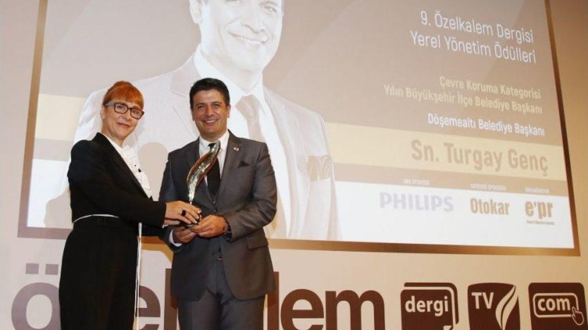 Döşemealtı Belediye Başkanı Turgay Genç, Kent Meydanı Projesi İle Yılın Büyükşehir İlçe Belediye Başkanı seçildi.Döşemealtı Belediye Başkanı Turgay Genç’in İlçenin ilk kent meydanı projesi Çevre Koruma kategorisinde ödüle layık görüldü. Başkan Turgay Genç’de bu proje ile ‘Yılın Büyükşehir İlçe Belediye Başkanı’ seçildi.12 kategoride yerel yönetim çalışmalarını değerlendiren ve bu yıl 9. Kez düzenlenen Özel Kalem Dergisi Yerel Yönetim Ödüllerinde, “Çevre Koruma” kategorisinde Döşemealtı Belediye Başkanı Turgay Genç, Döşemealtı Kent Meydanı Projesi İle Yılın Büyükşehir İlçe Belediye Başkanı seçildi. Ödül törenine çok sayıda büyükşehir, il, ilçe belediyelerinin yanı sıra yerel yönetimler ve şehircilik alanından çok sayıda belediye başkanı, meclis üyeleri ve üst düzey yetkililer katıldı.Alanında saygın isim yapmış olan seçici bir kurul tarafından değerlendirilen projeler arasından bu yıl 34’ü ödüle layık görülerek bunları hayata geçiren 31 belediye başkanına ödülleri törenle verildi.Çevre Koruma Kategorisinde Döşemealtı Belediye Başkanı Turgay Genç, Döşemealtı Belediyesi Kent Meydanı Projesi İle Yılın Büyükşehir İlçe Belediye Başkanı seçildi. Başkan Genç’e ödülünü EPR Yerel Yönetim Ajanı sahibi Erengül Bilenser verdi. Genç, “Antalya’ya örnek ilçemize yakışır, modern bir kent meydanı projesi hazırladık ve kısa sürede tamamlayarak halkımızın hizmetine açtık. Döşemealtı’nda değişimin, yeniliğin öncüsü olmaktan bölgemize kazandırdığımız projelerin de saygın jüri üyeleri tarafından ödüle değer görülmesi bizleri mutlu ediyor” dedi.Döşemealtı Belediyesi daha önce de Sosyal Demokrat Belediyeler Derneği (SODEM) tarafından Döşemealtı Gençlik Meclisi (DÖGEM) projesi ile ödüllendirilmişti.