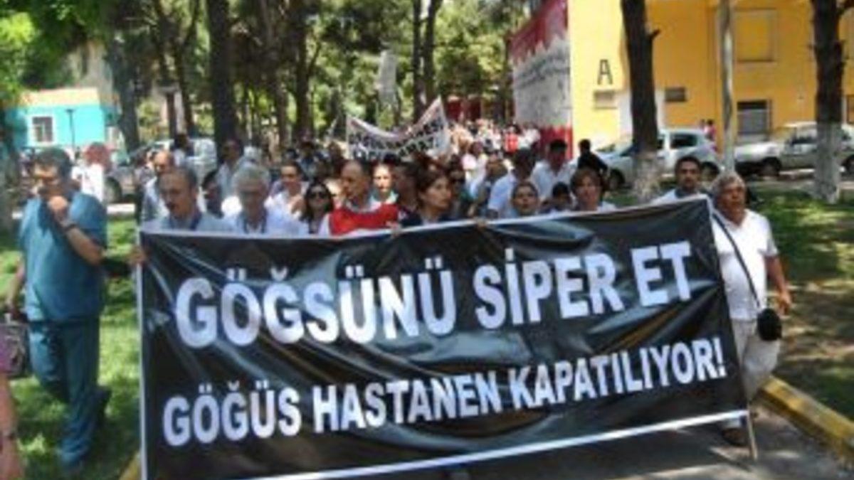 İZMİR üyeleri, kararı protesto için Dr. Suat Seren Göğüs Hastalıkları Hastanesi'nin yemekhanesi önünde toplandı. Tarihi hastanenin birleştirilerek kapatılması kararını pankartlarla ve sloganlarla protesto ederek başhekimlik önüne kadar yürüyen sendika üyeleri, burada bir basın açıklaması yaptı. İzmir Tabip Odası Başkanı Suat Kaptaner, Sağlık Bakanlığı'na, "Bu hastaneyi kapatmak için bir tane haklı gerekçeniz yok. Bu kararı derhal geri çekin" diye diye seslendi. SES İzmir Şubesi Başkanı Rukiye Çakır ise hastanenin devrine karşı iki haftadır eylem yaptıklarını ve karardan dönülünceye kadar sürdüreceklerini bildirdi. Türk Sağlık-Sen İzmir 2 Nolu Şube Başkanı Şenol Atıcı da İzmir Kuzey Kamu Hastaneleri Genel Sekreterliği tarafından bahçeye asılan ve hastanenin devriyle ilgili bilgi içeren pankartların gerçeği yansıtmadığını iddia etti.
